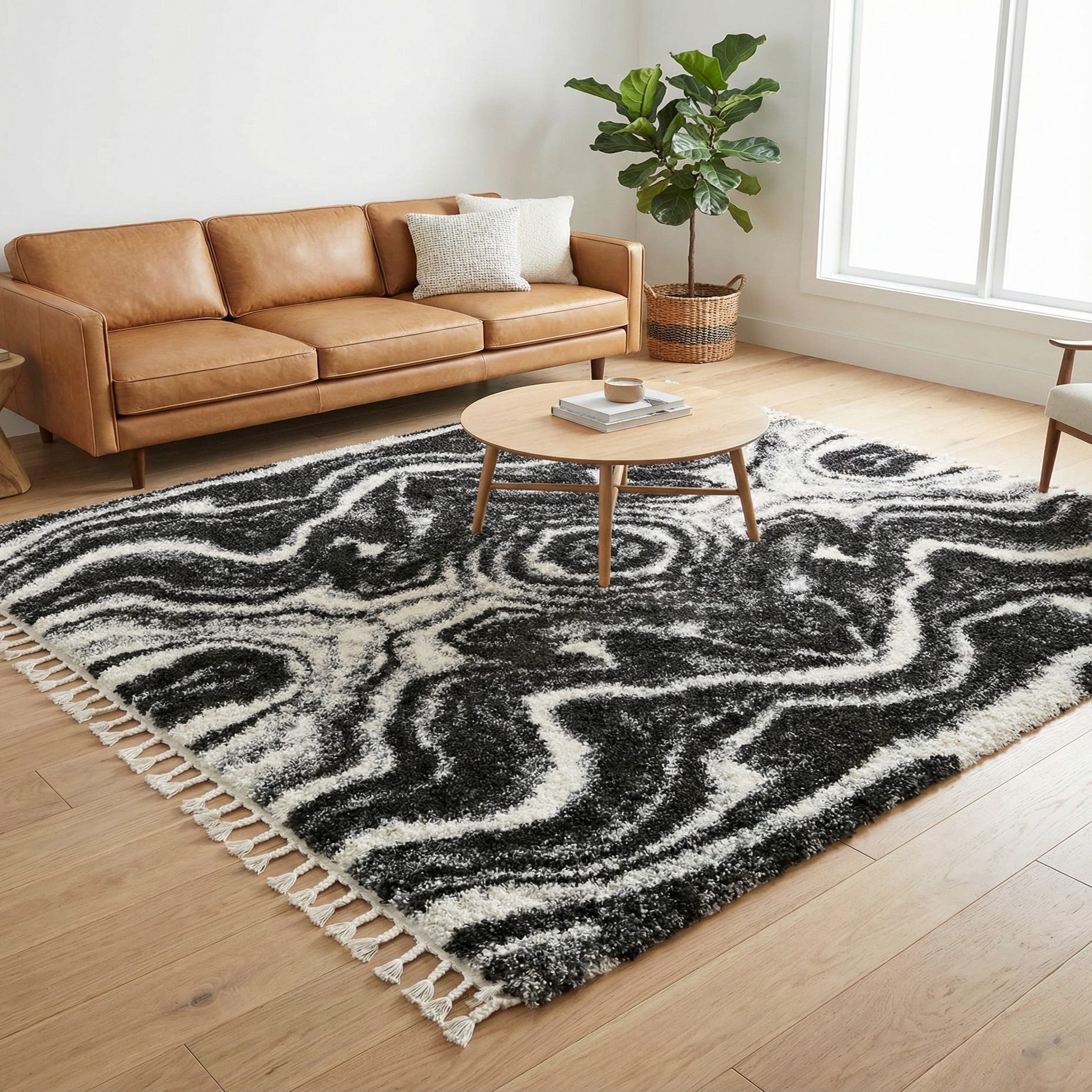 Primary color is Black and White. Colors in this rug include: Black and White, Gray.