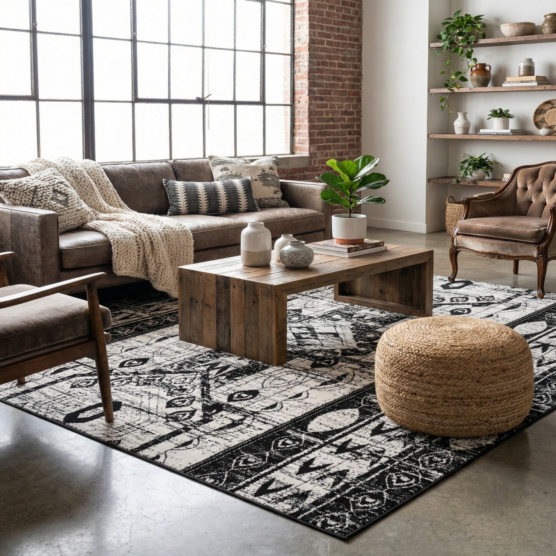 Primary color is Black and White. Colors in this rug include: Black and White, Black.