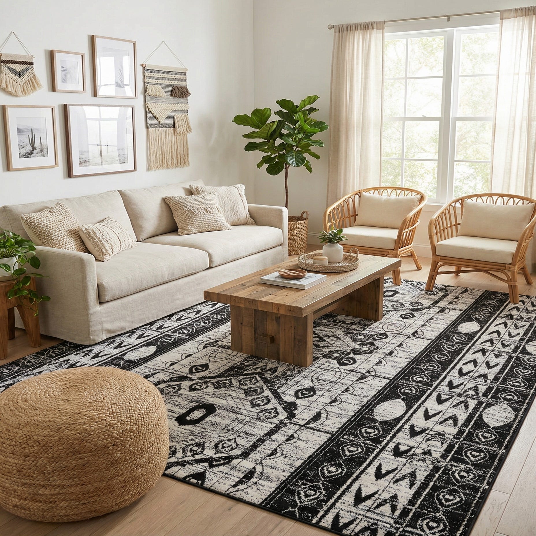 Primary color is Black and White. Colors in this rug include: Black and White, Black.