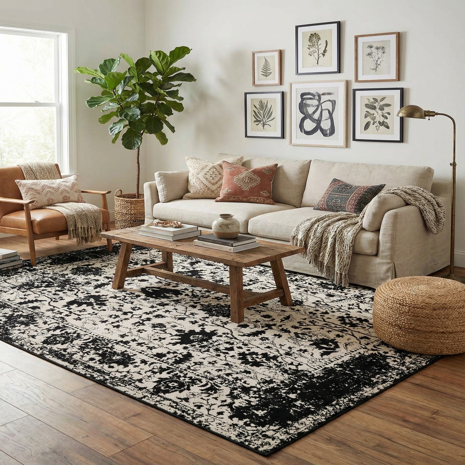 Primary color is Black and White. Colors in this rug include: Black and White, Black.