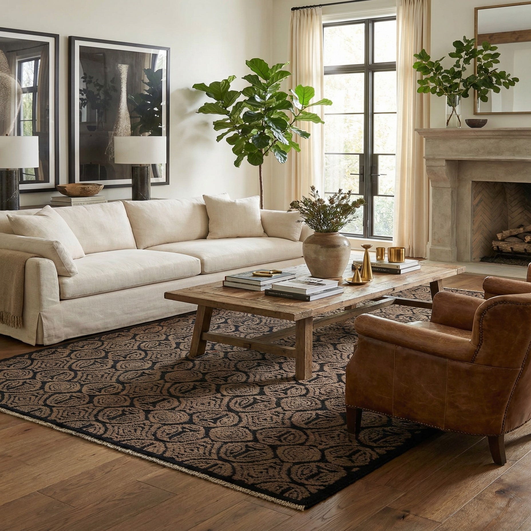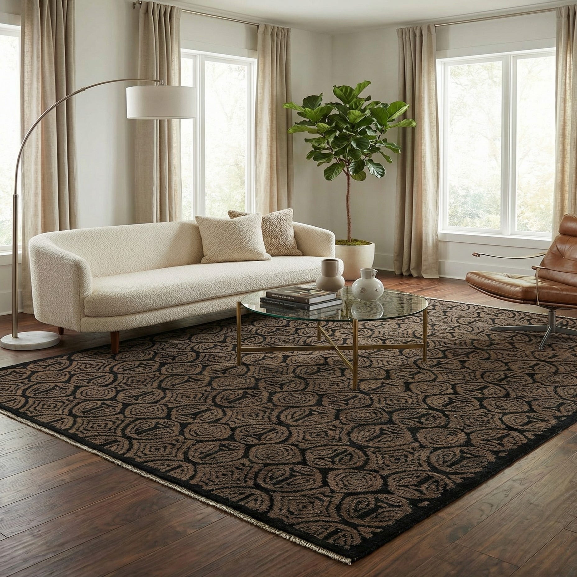Primary color is Black Brown. Colors in this rug include: Black Brown, Ivory.