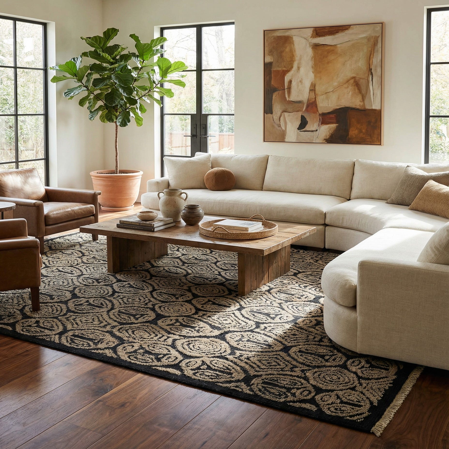 Primary color is Black Brown. Colors in this rug include: Black Brown, Ivory.