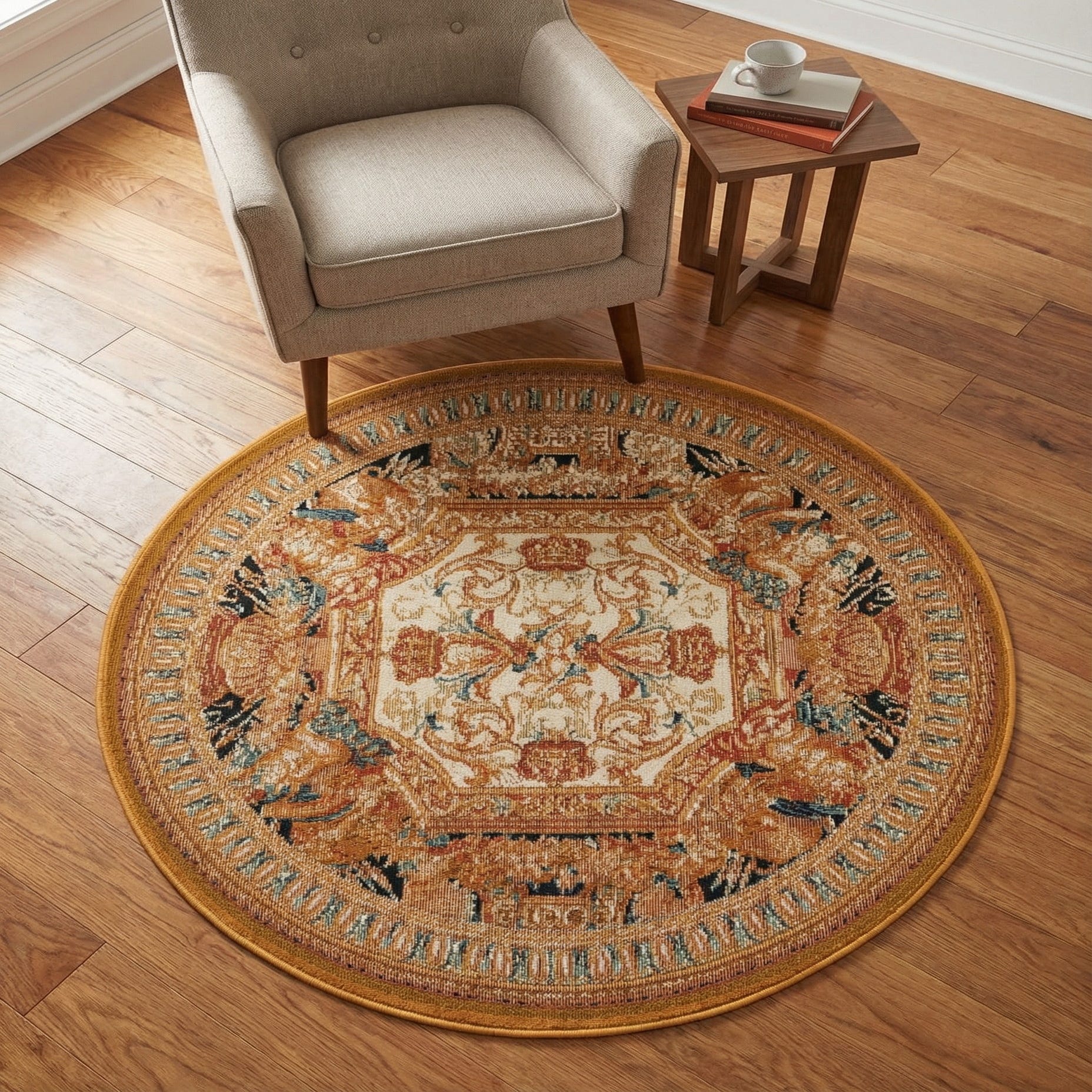 Detail image of 3' 3 x 3' 3  Washable Traditional Indoor / Outdoor Round Rug