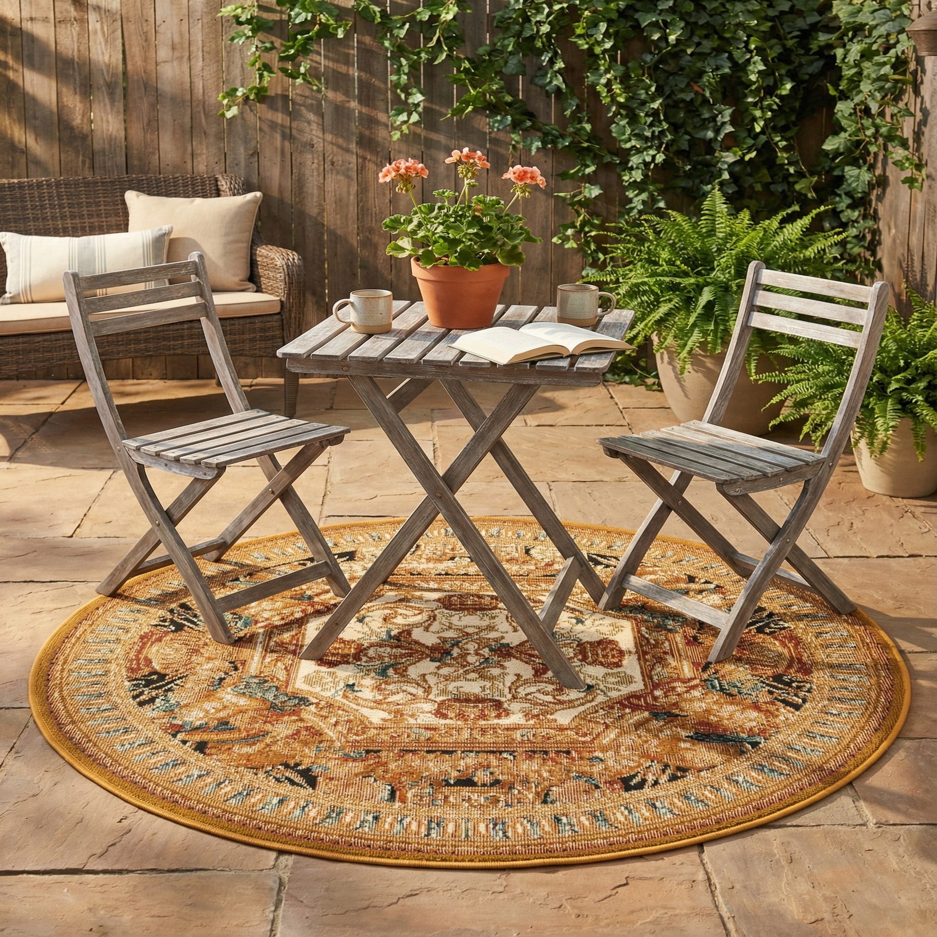 Detail image of 3' 3 x 3' 3  Washable Traditional Indoor / Outdoor Round Rug