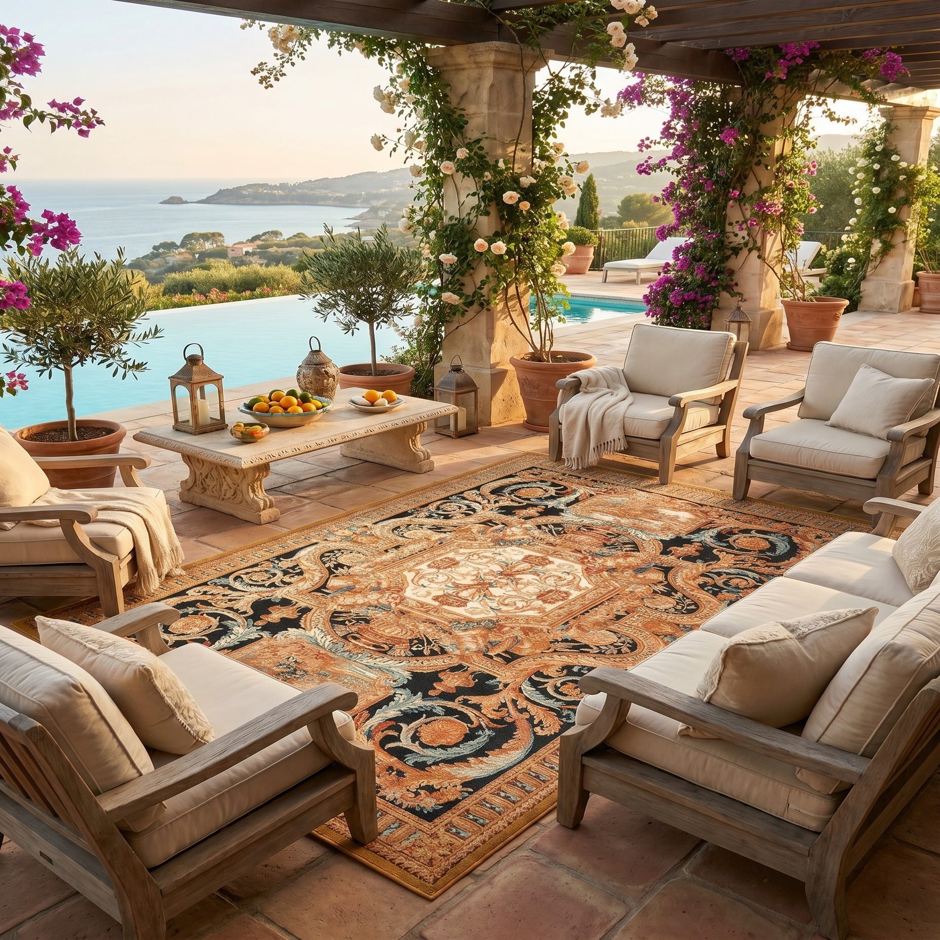 6' x 9' Easy-Clean Traditional Indoor / Outdoor Rug