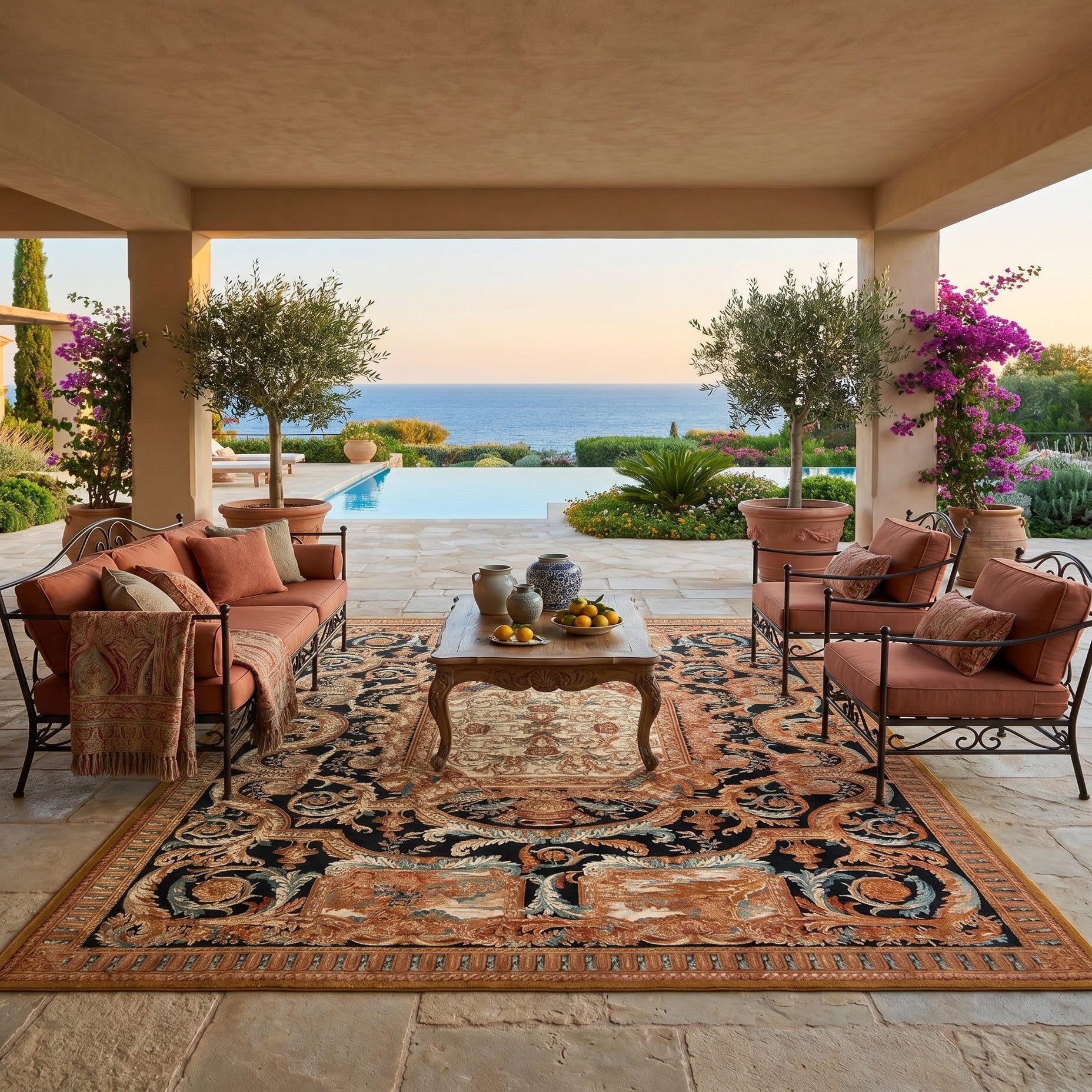 9' x 12' Easy-Clean Traditional Indoor / Outdoor Rug