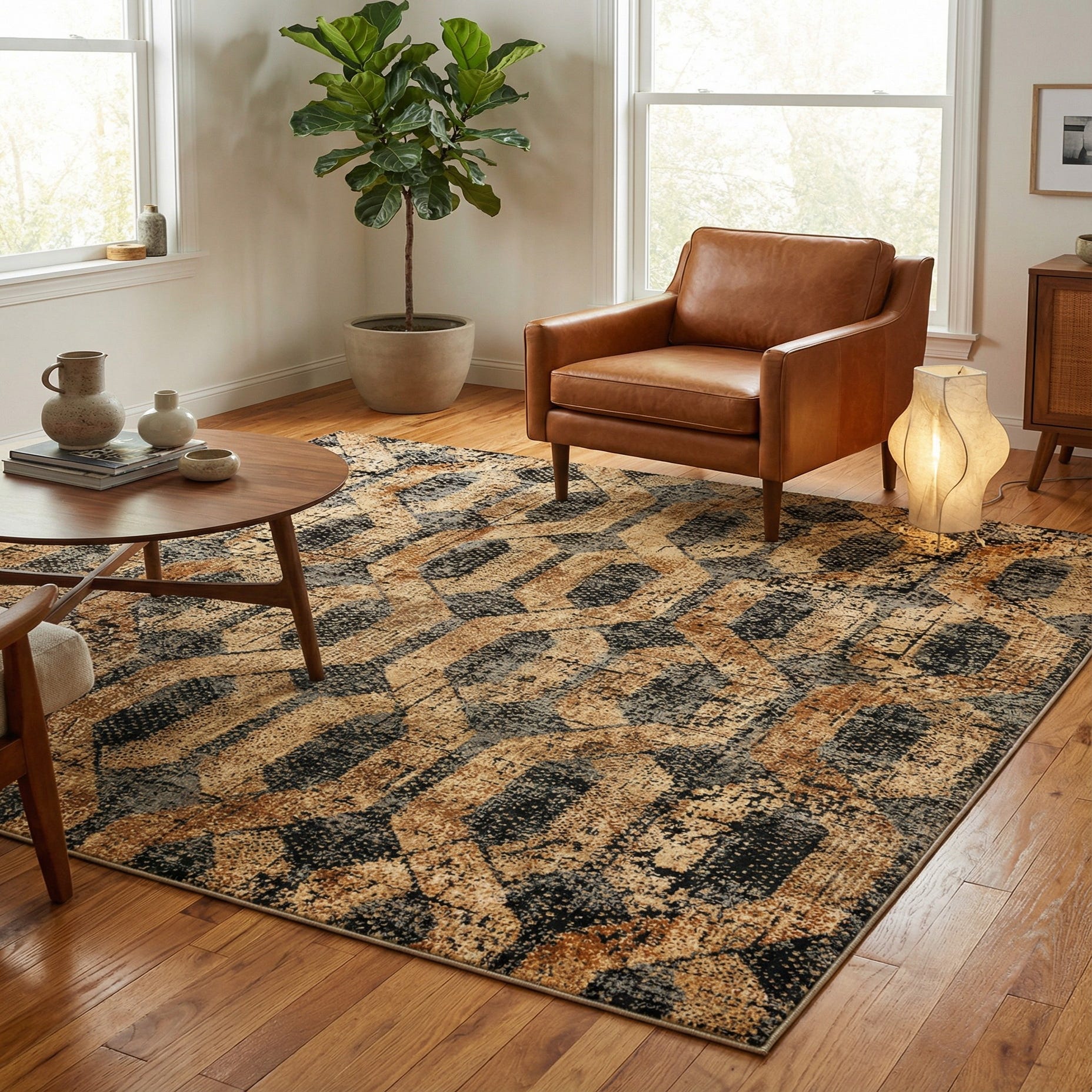 Primary color is Black Gray. Colors in this rug include: Black Gray, Beige, Black, Gray, Light Brown.