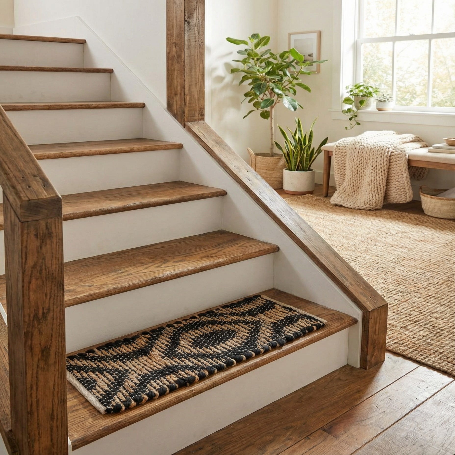 0' 9 x 2' 6 Hand Woven Chindi Jute Stair Rug