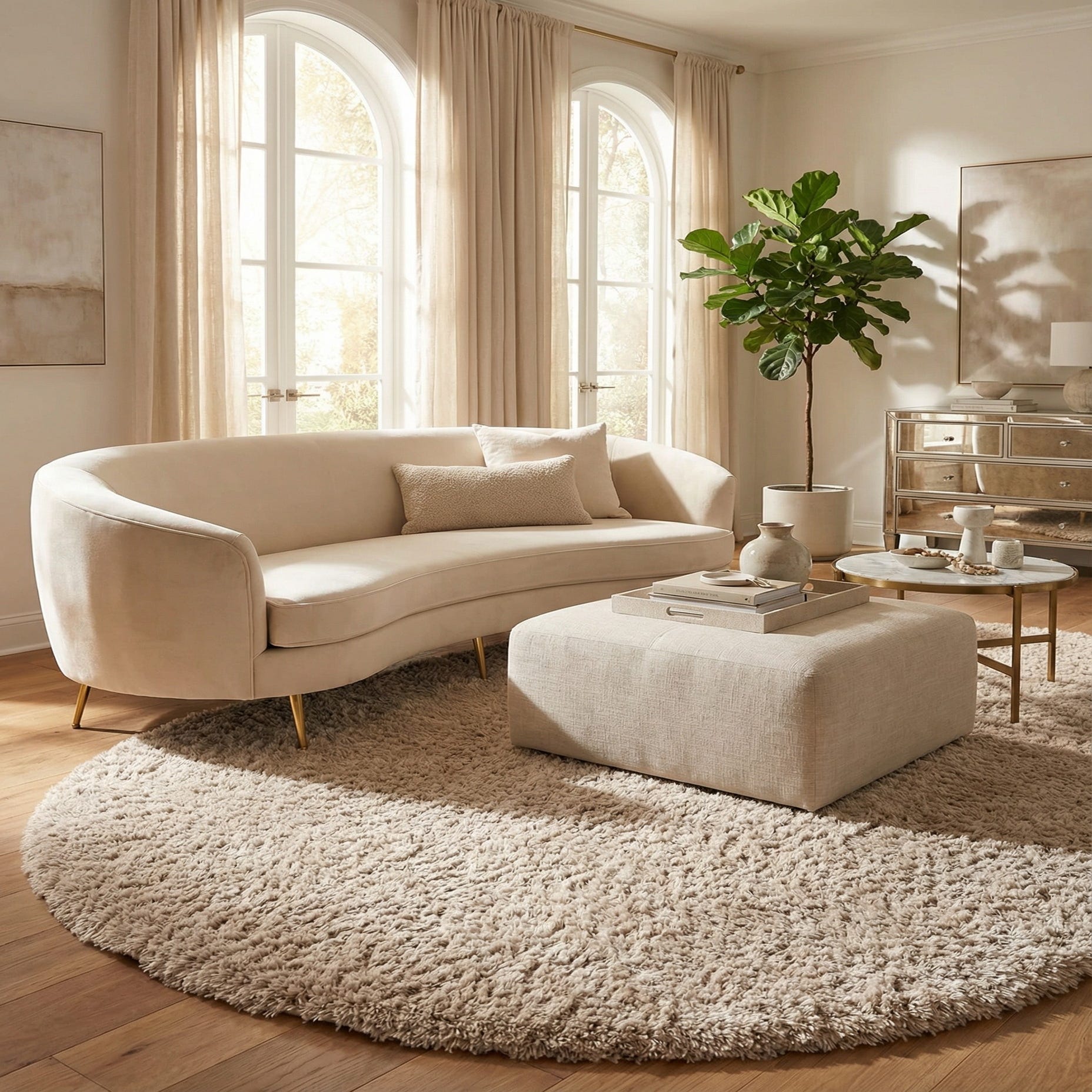 • Cream bouclé curved sofa