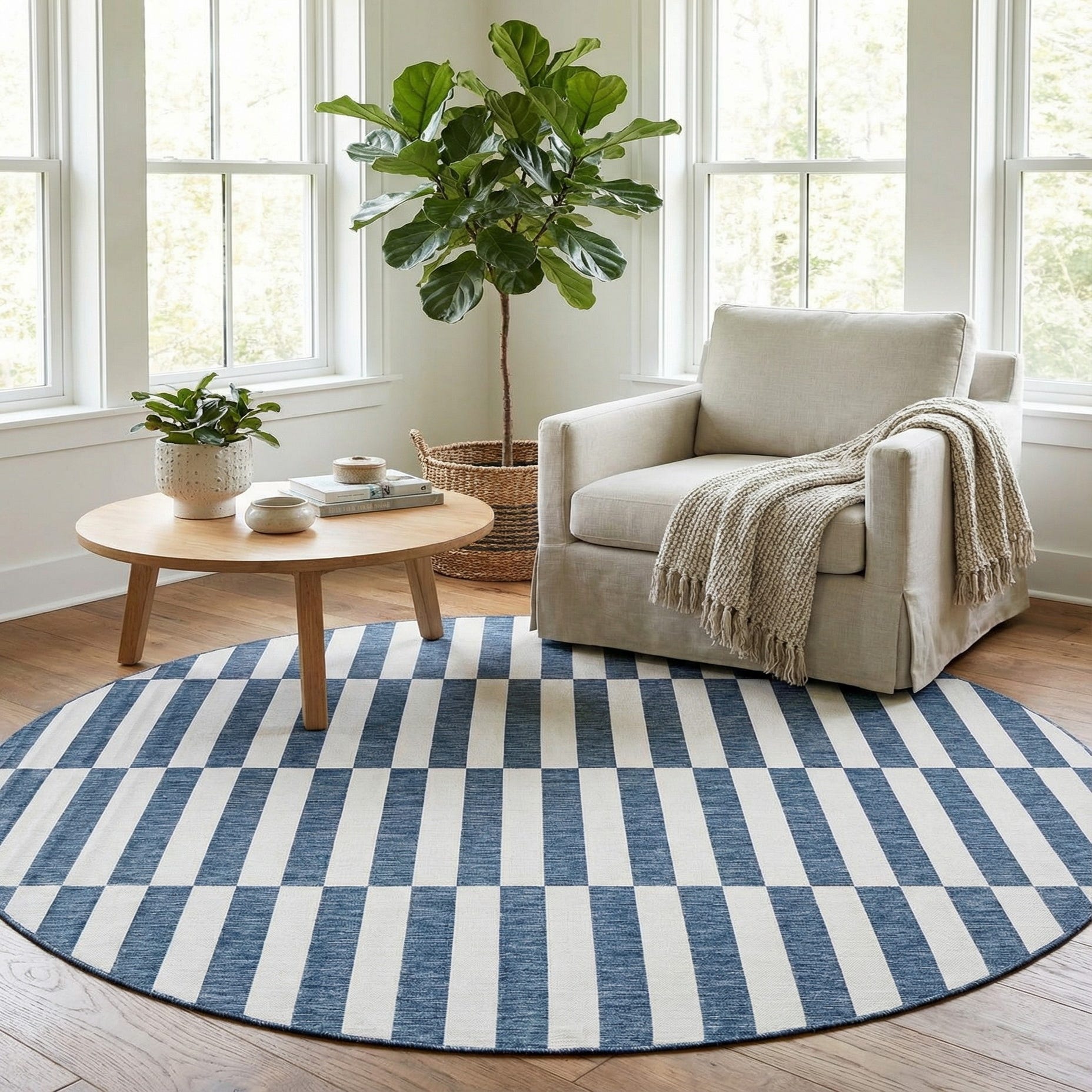 10' x 10' Washable Striped Indoor / Outdoor Round Rug