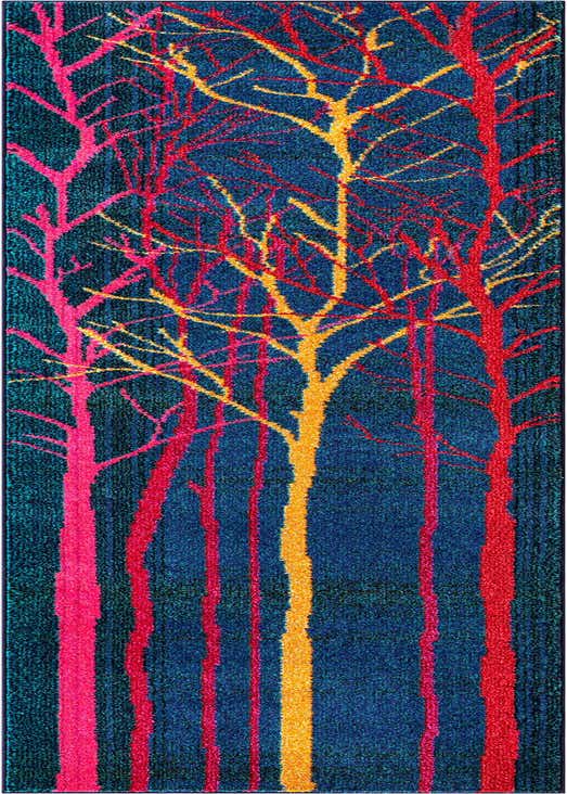 Primary color is Blue. Colors in this rug include: Blue, Orange, Red, Pink.