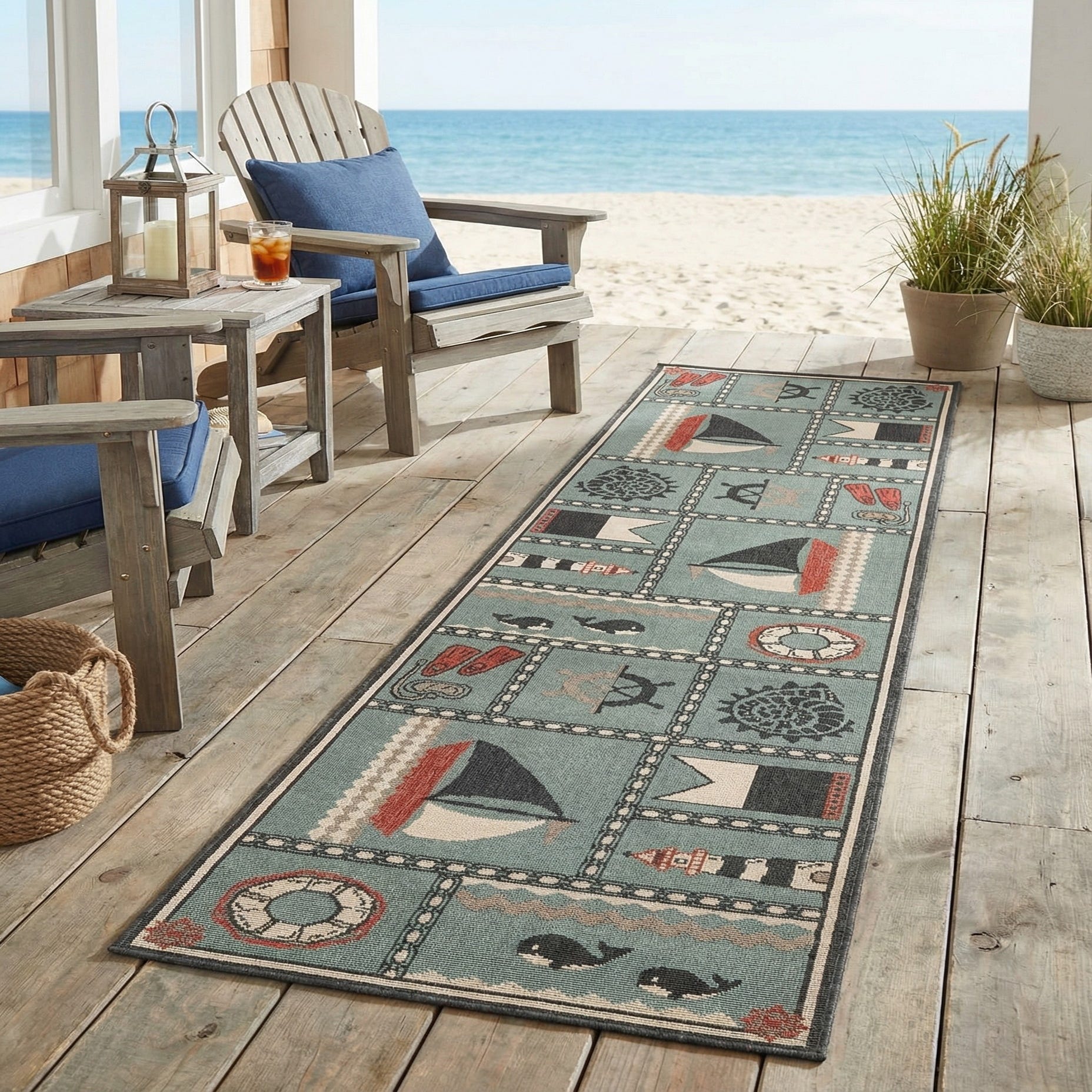 2' 7 x 10' Washable Coastal Indoor / Outdoor Runner Rug