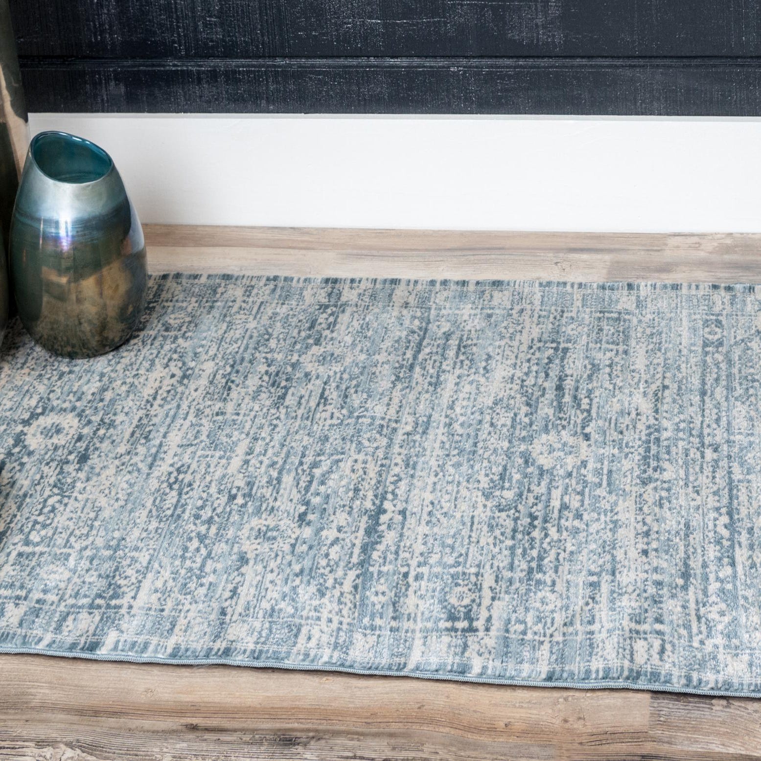 Primary color is Blue. Colors in this rug include: Blue, Beige.