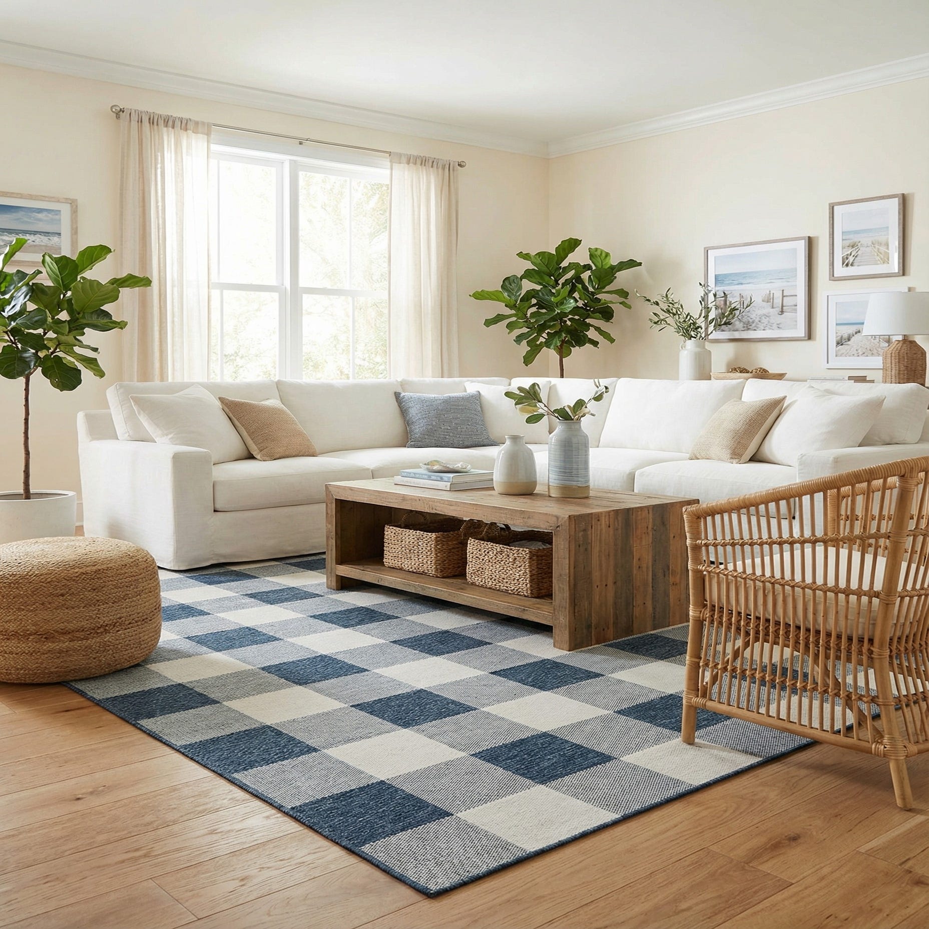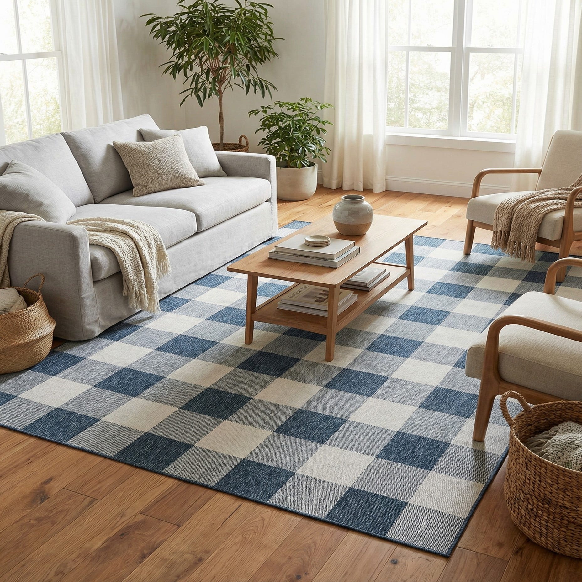 10' x 10' Washable Checkered Indoor / Outdoor Square Rug