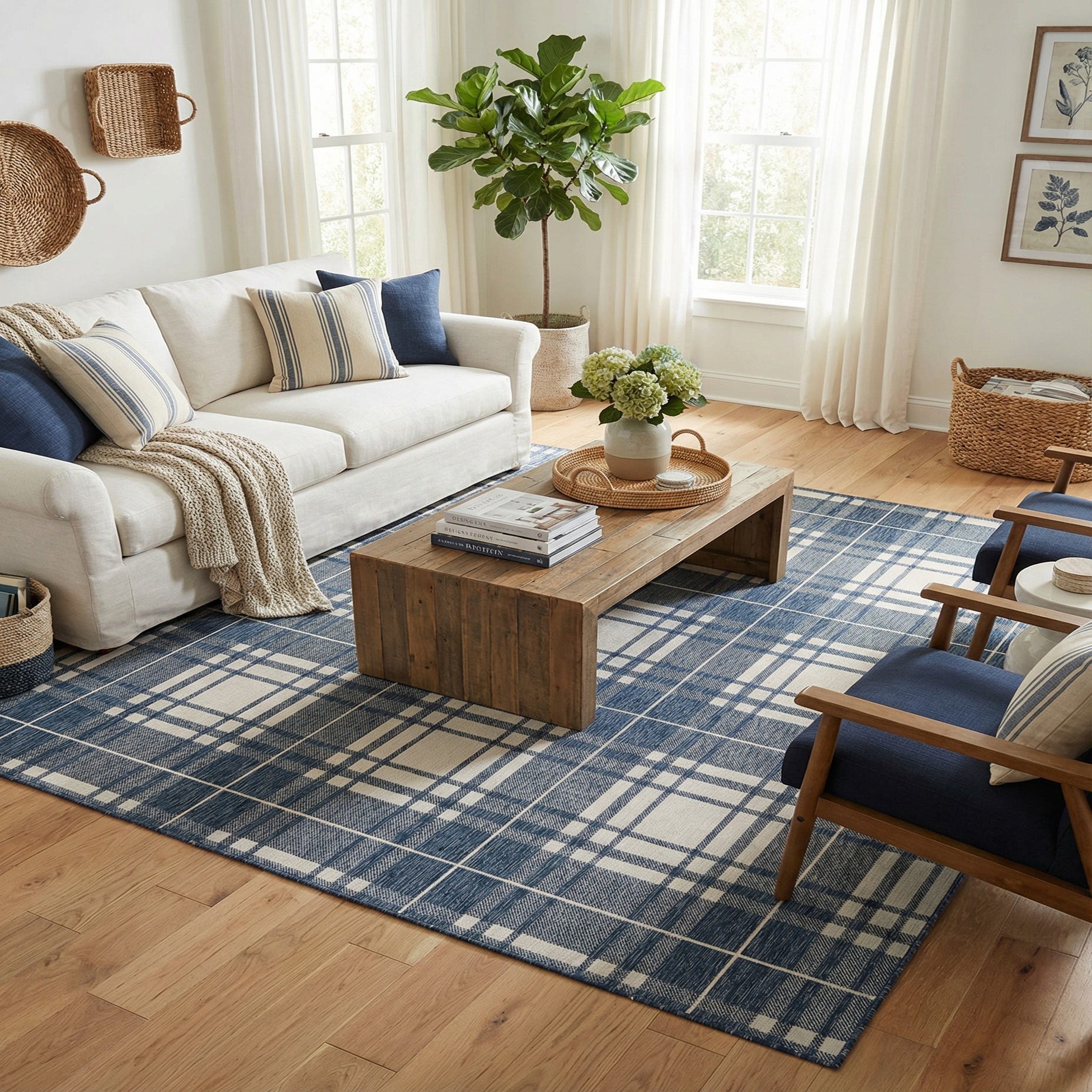 10' x 10' Washable Checkered Indoor / Outdoor Square Rug