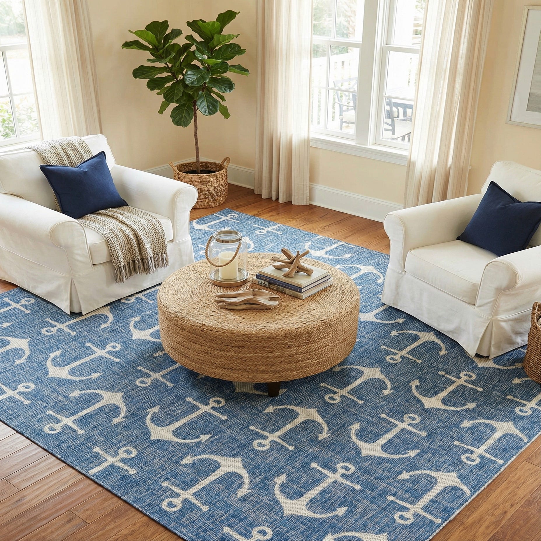 10' x 10' Washable Coastal Indoor / Outdoor Square Rug