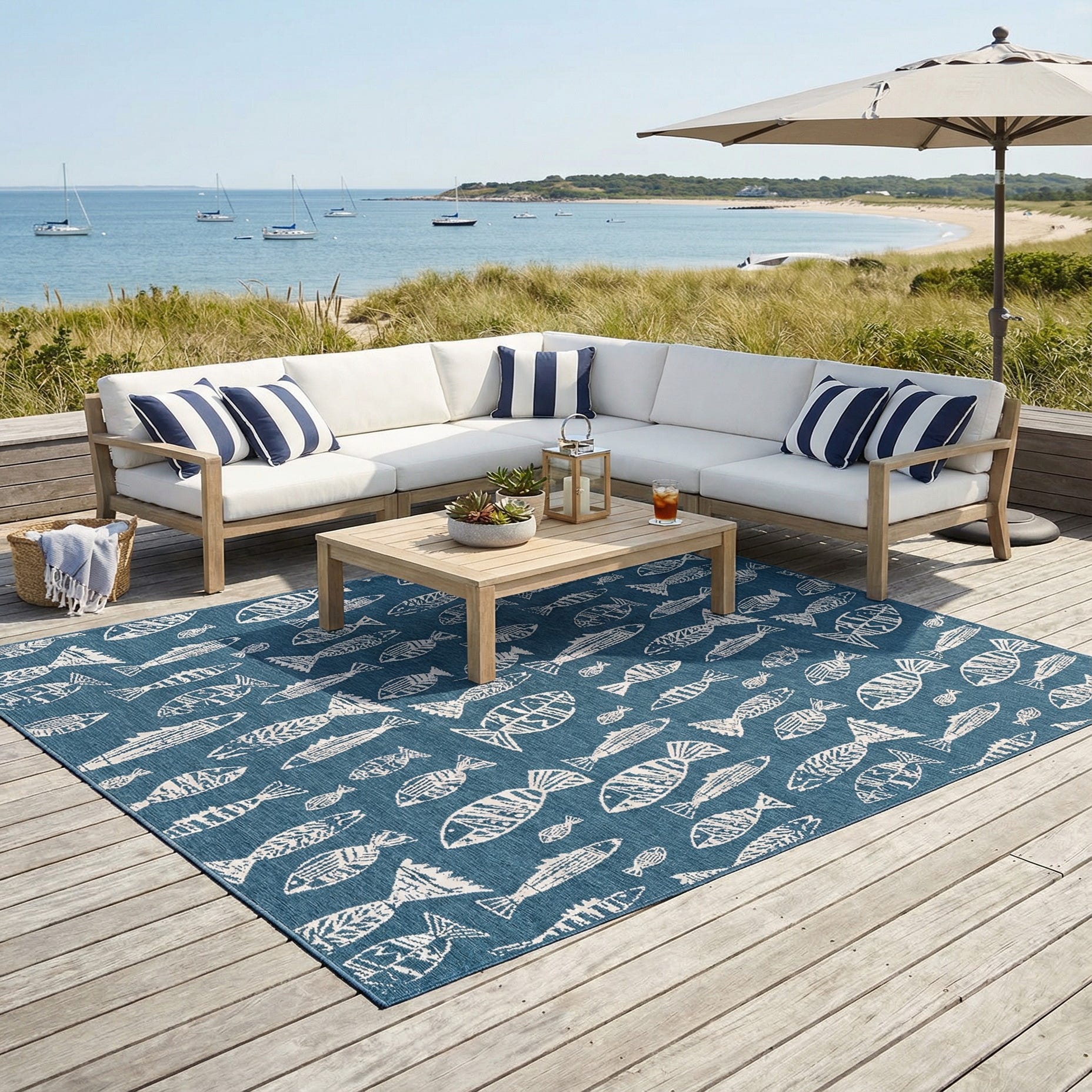 10' x 10' Washable Coastal Indoor / Outdoor Square Rug