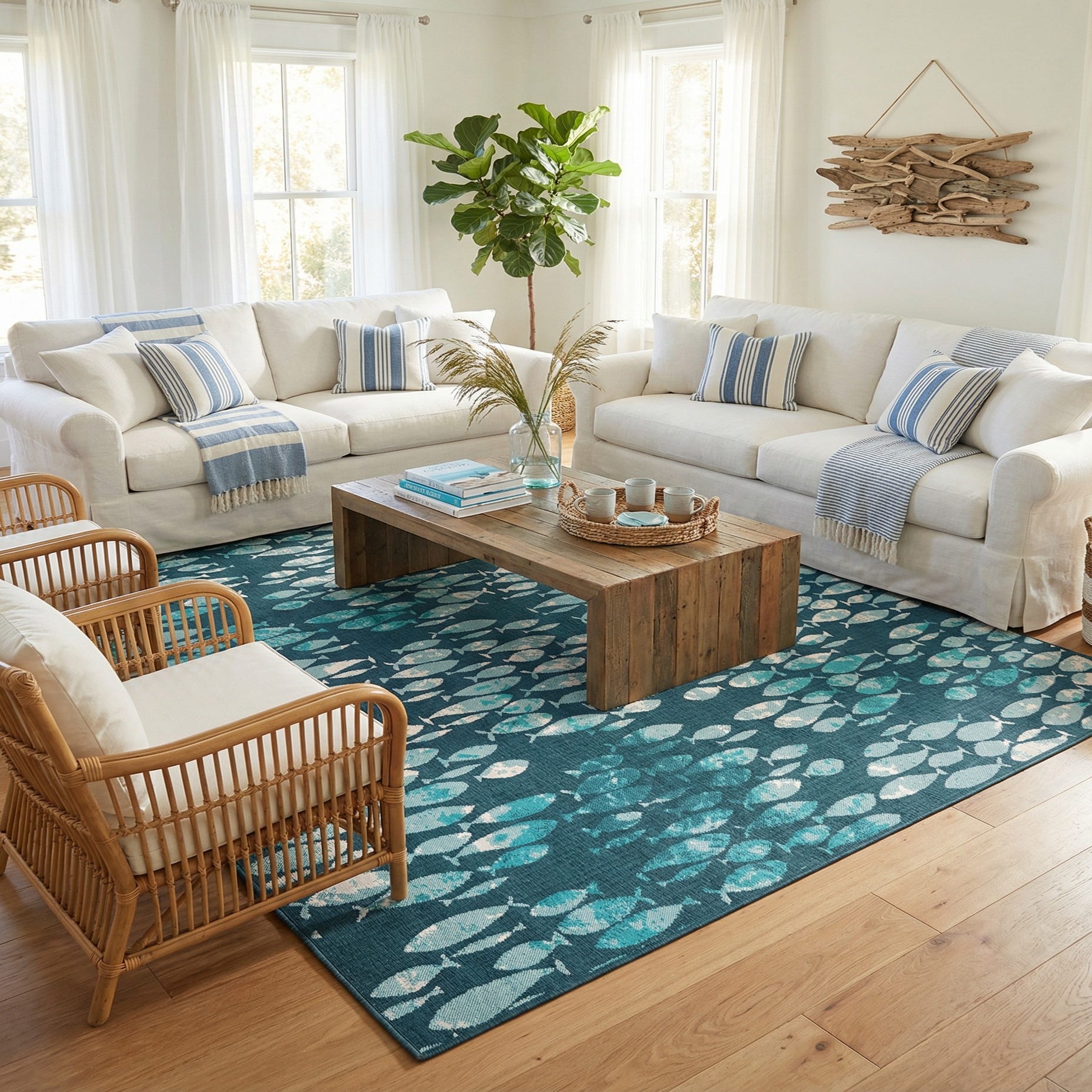 10' x 10' Washable Coastal Indoor / Outdoor Square Rug