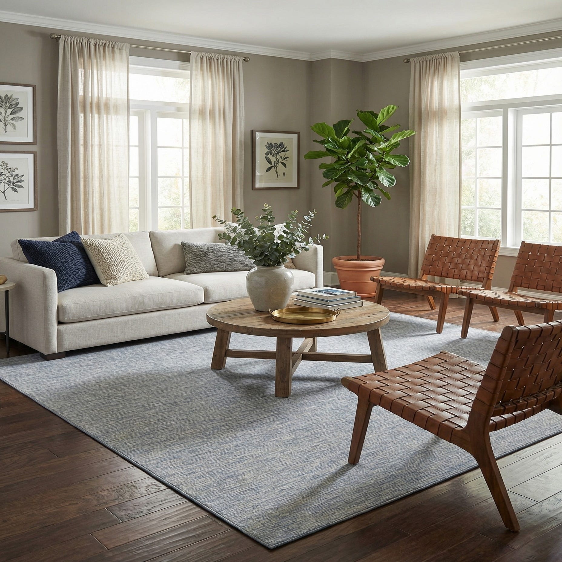 I bought this rug in turquoise for a 12x12 screened porch and it’s perfect! It arrived folded but flattened perfectly by rolling it up for a day in both directions. There are a couple minor weaving imperfections but nothing that affects the beauty or durability.