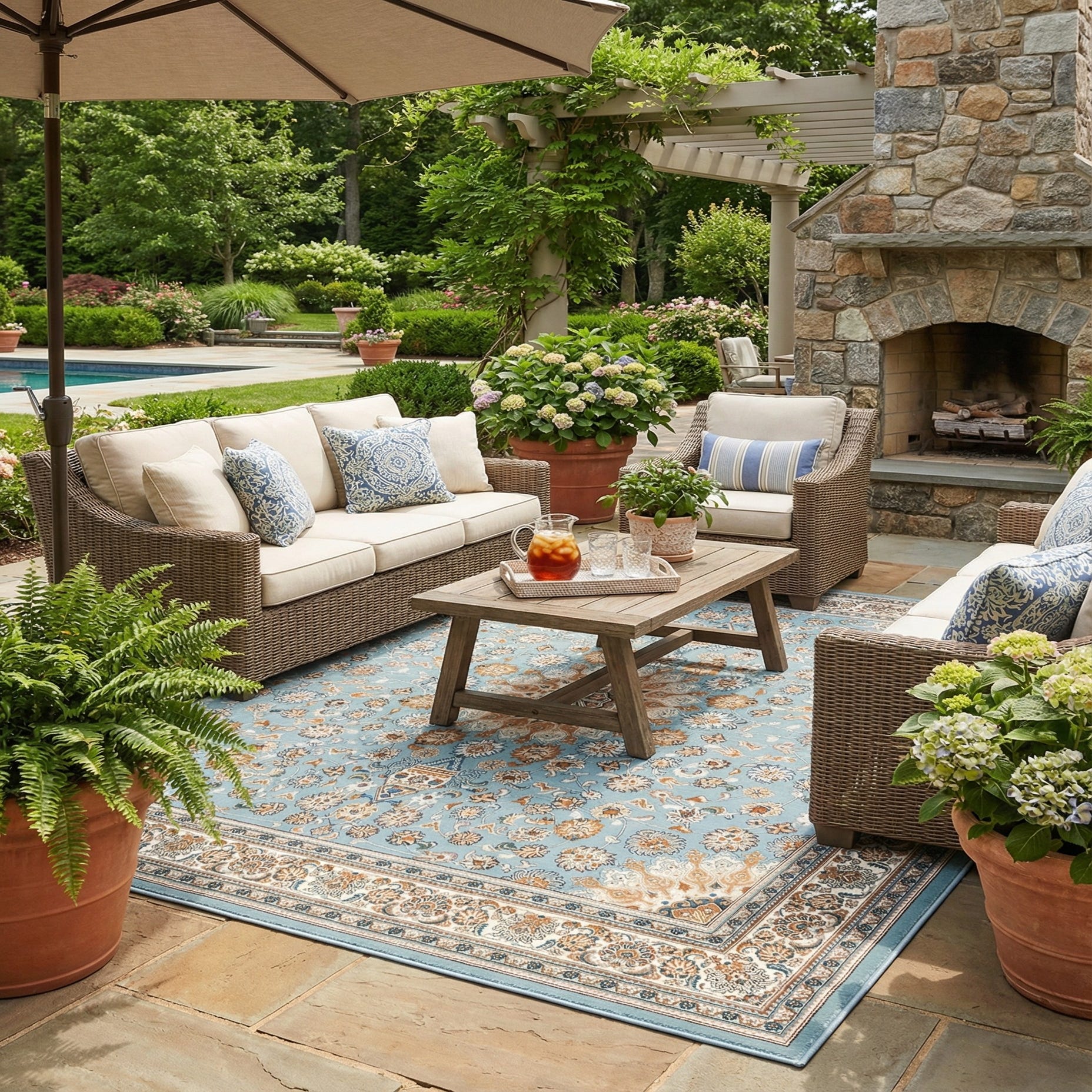 10' x 10' Washable Traditional Indoor / Outdoor Square Rug