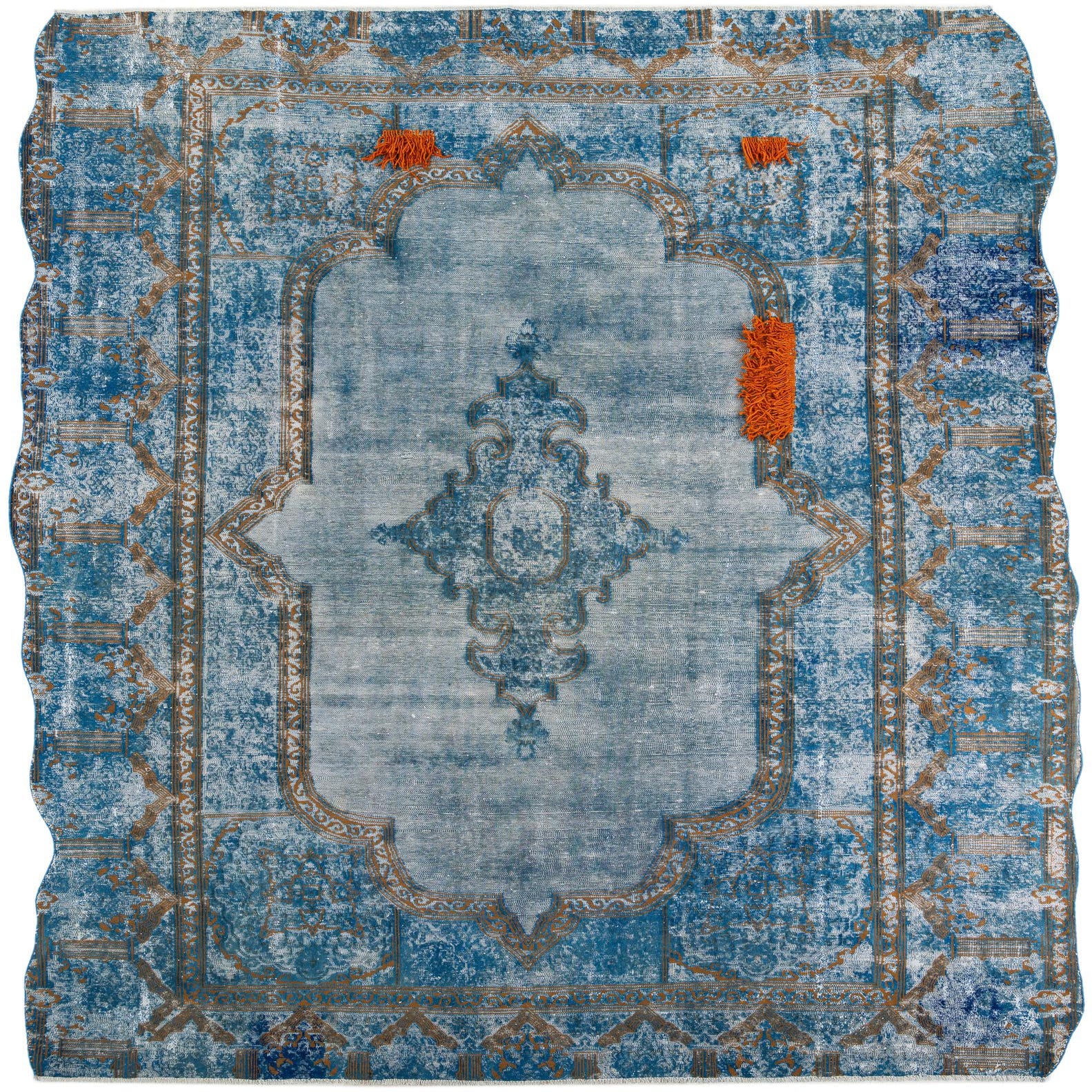 This Persian Ultra Vintage rug is an antique Persian Rug that has been washed, over-dyed, and then shaved down to a low pile. Look at the detail pictures to fully appreciate the uniqueness of this piece.