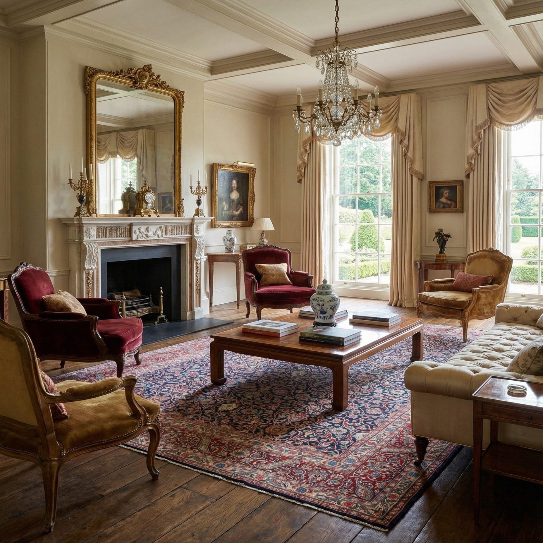 Primary color is Blue. Colors in this rug include: Blue, Dark Blue, Red, Beige, Green, Brown.