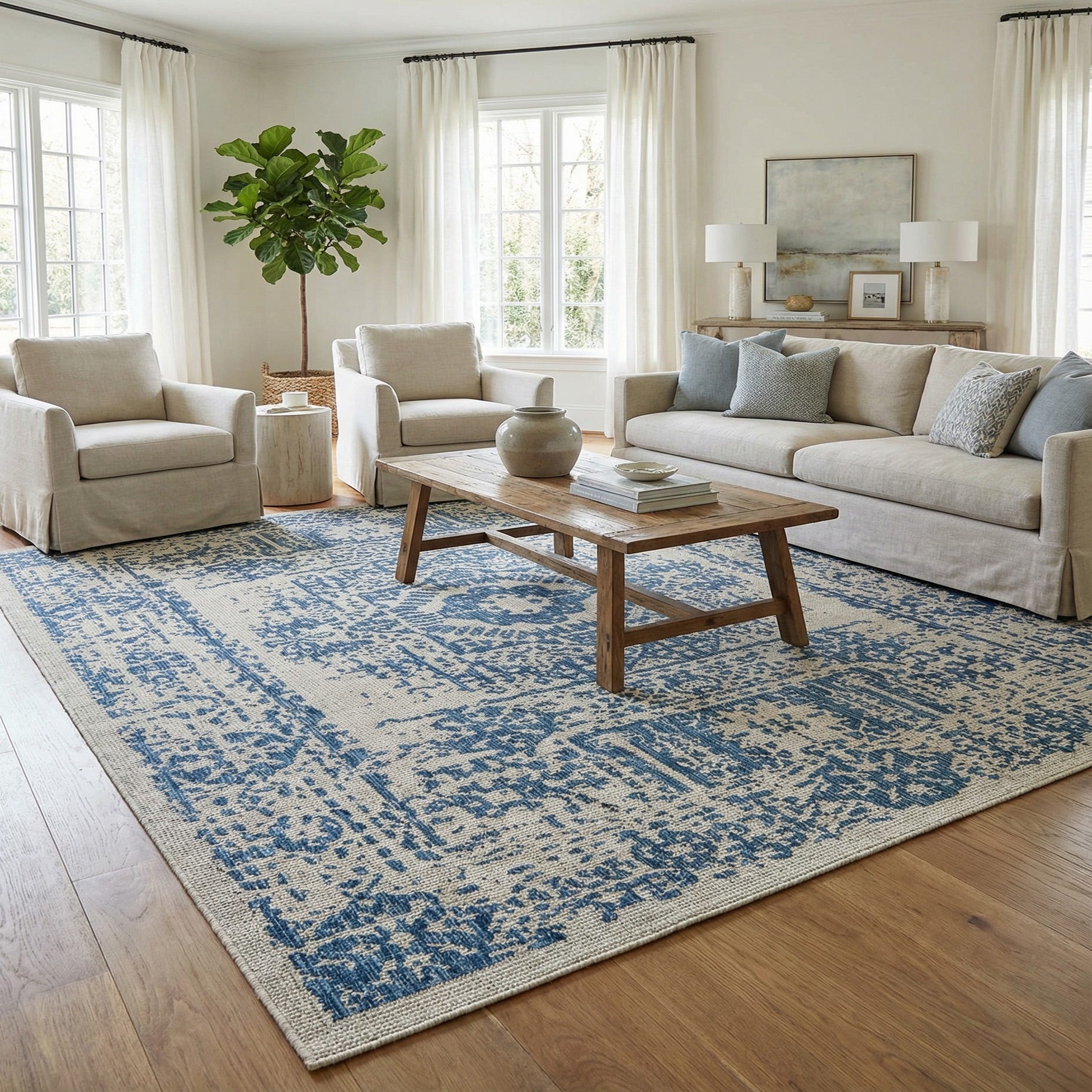 Primary color is Blue. Colors in this rug include: Blue, Gray.