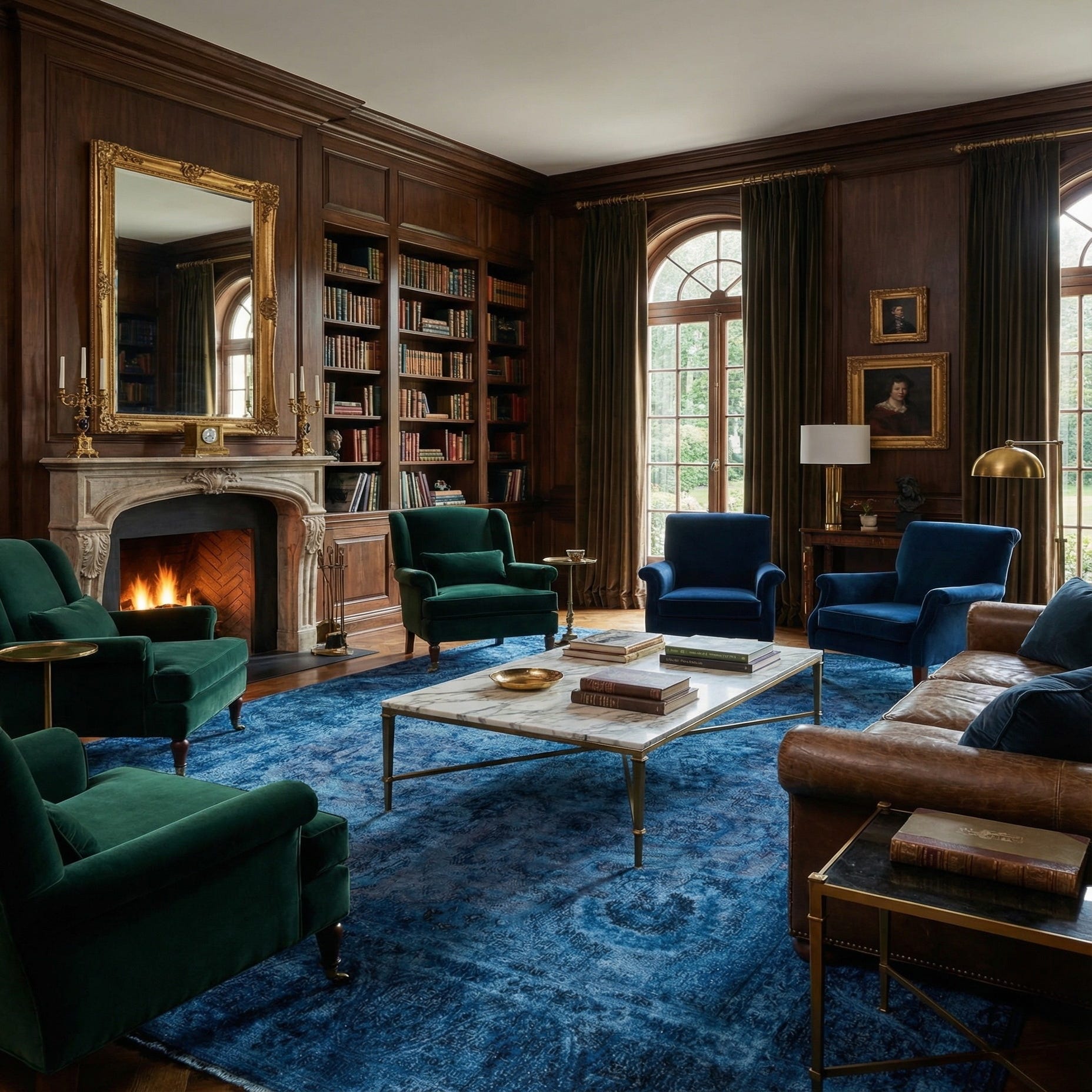 Primary color is Blue. Colors in this rug include: Blue, Blue, Black, Dark Blue.