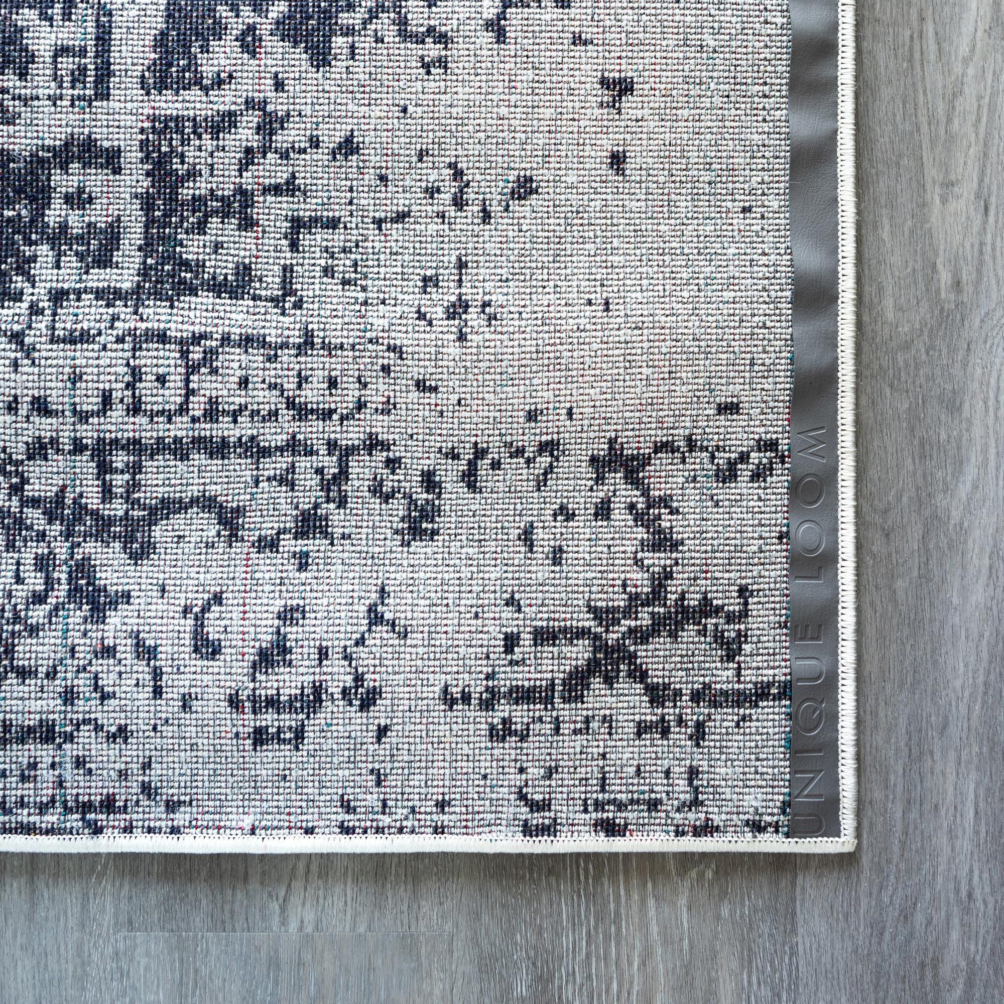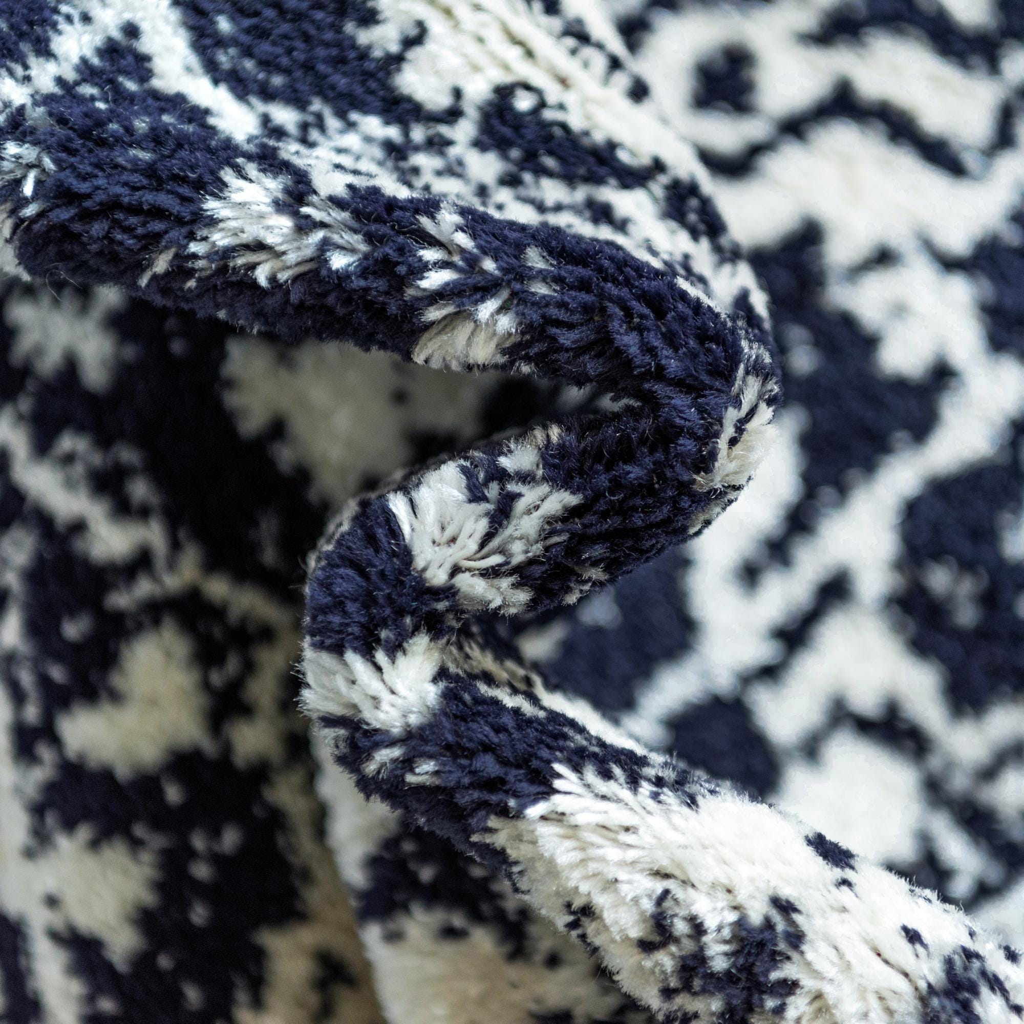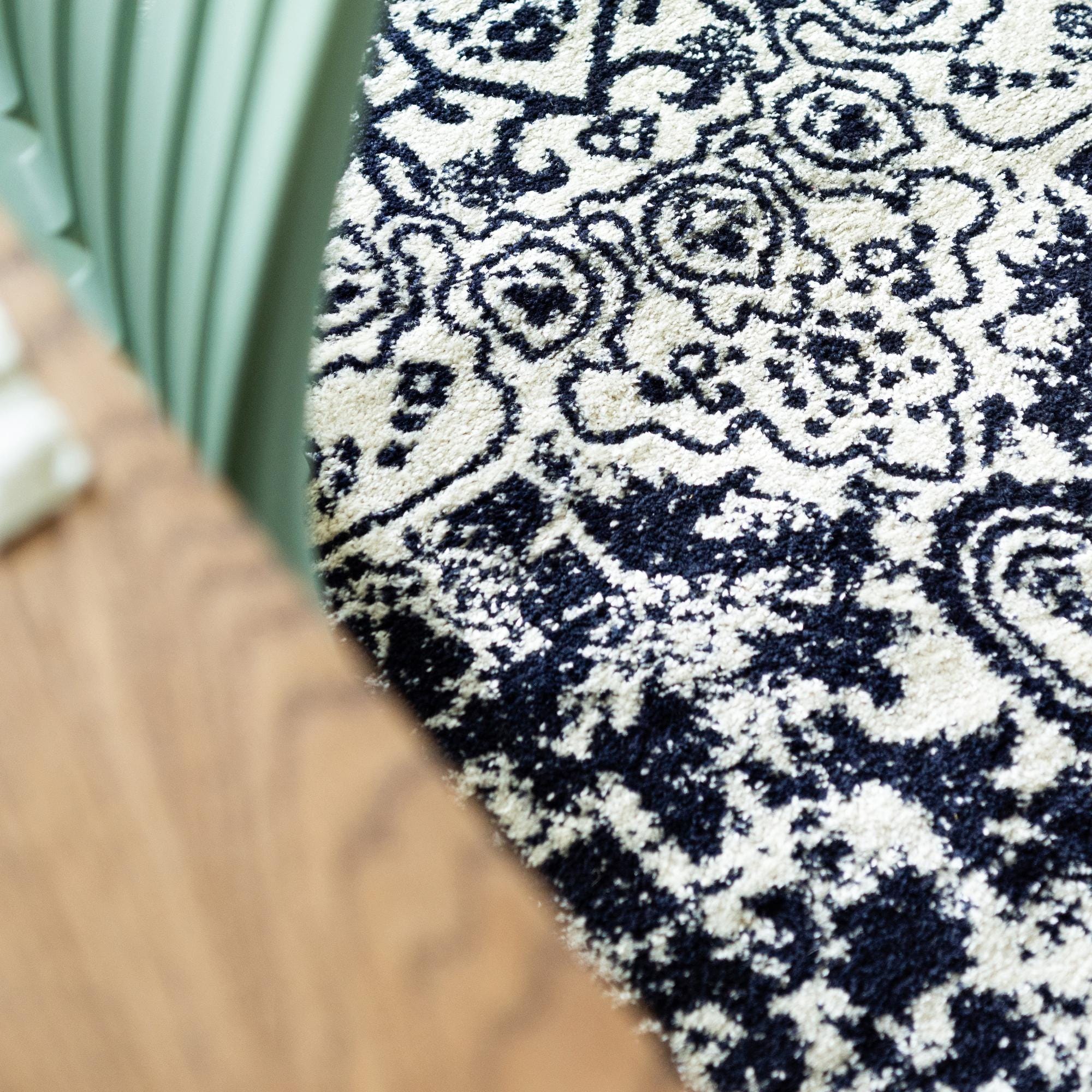Primary color is Blue. Colors in this rug include: Blue, Ivory.