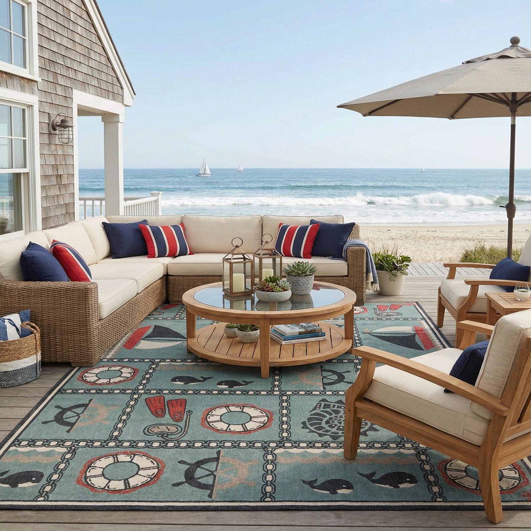 10' x 14' Washable Coastal Indoor / Outdoor Rug