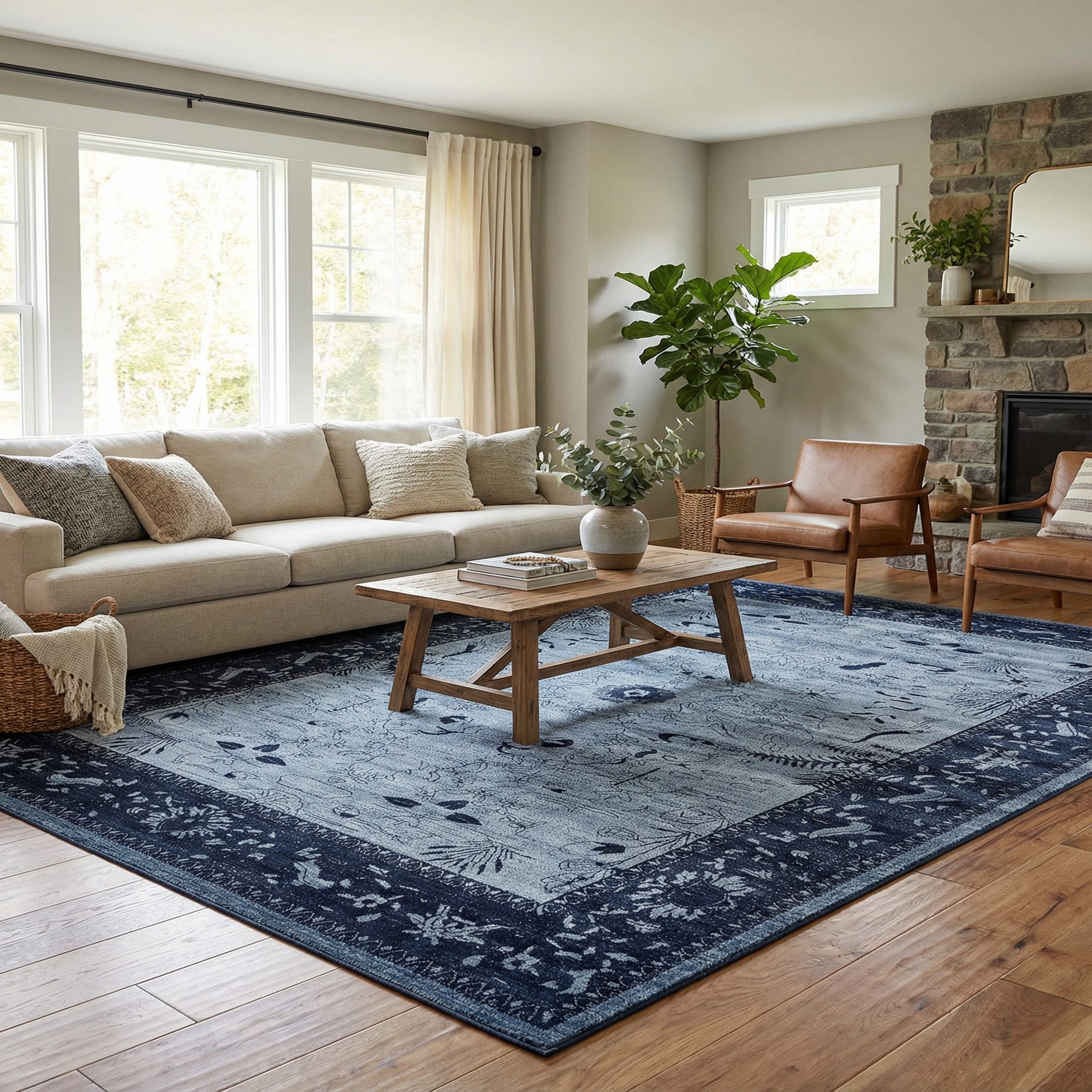 Primary color is Blue. Colors in this rug include: Blue, Navy Blue.