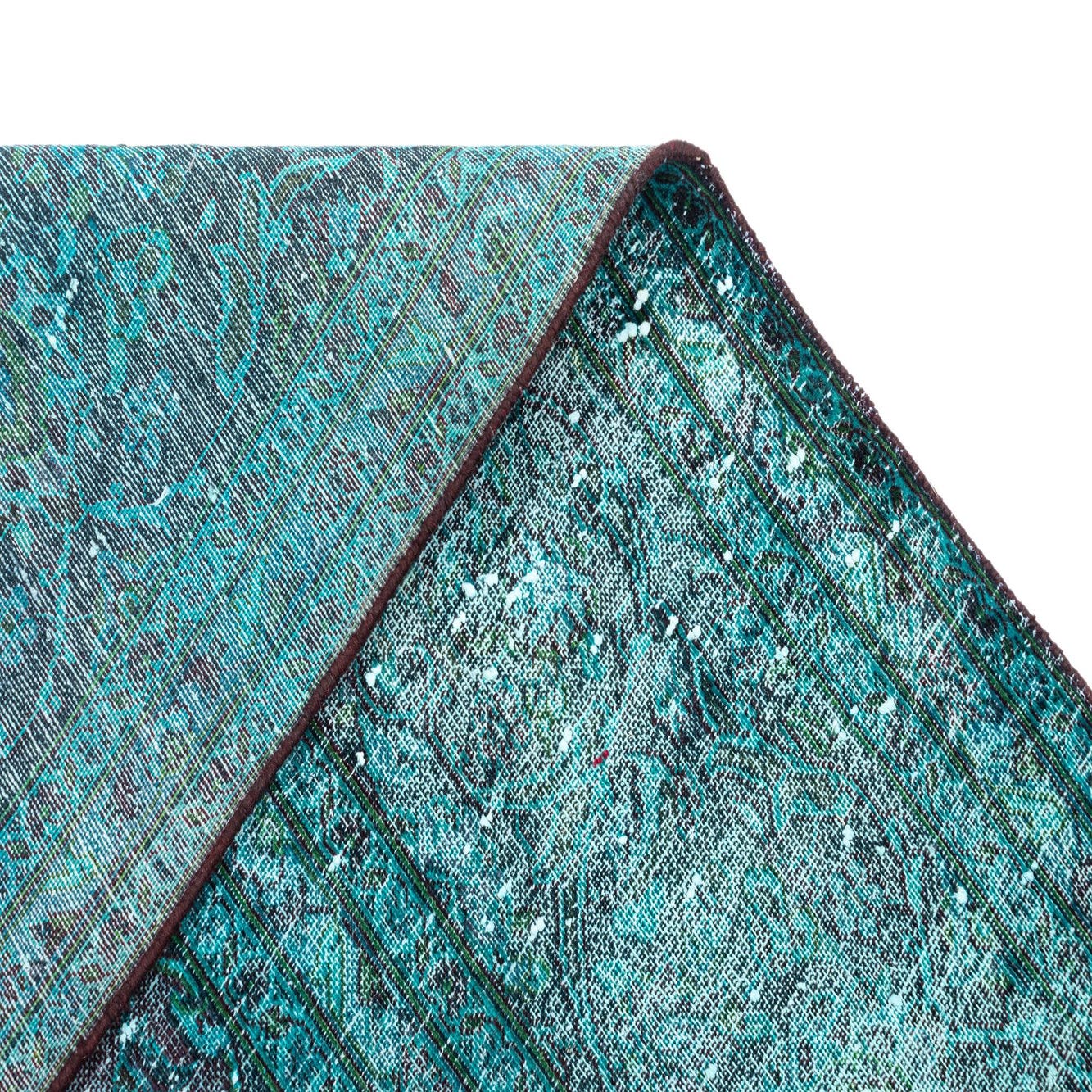 Primary color is Blue. Colors in this rug include: Blue, Green, Turquoise, Violet, Brown.