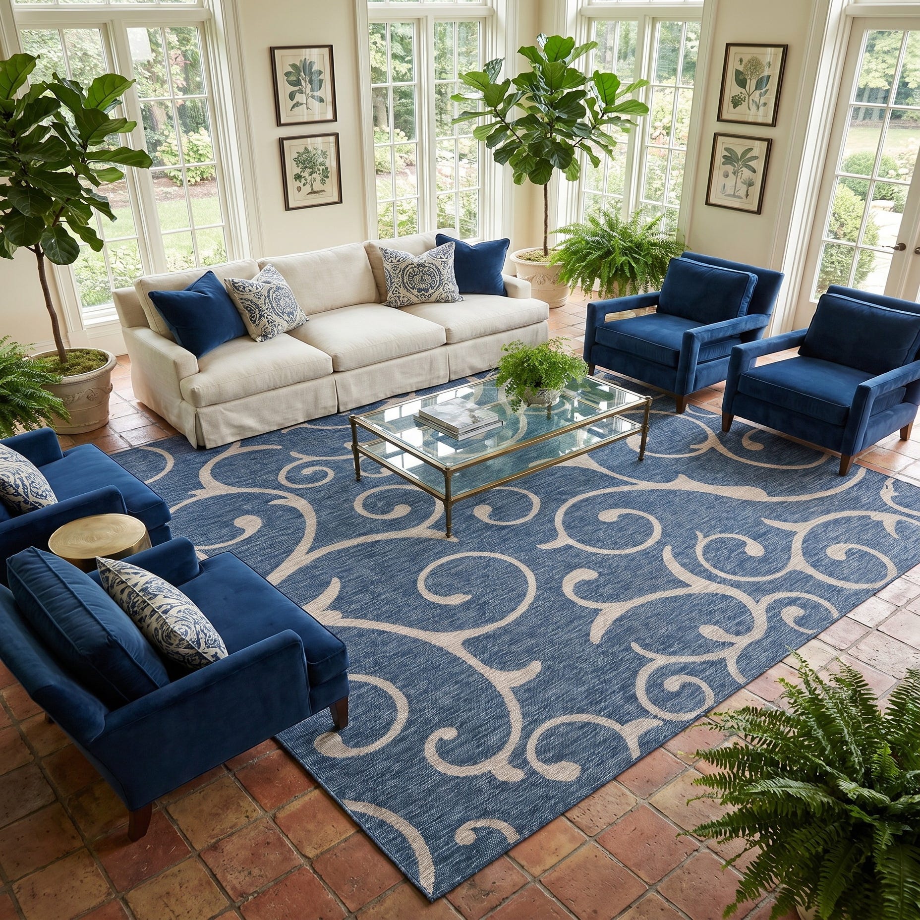 10' 8 x 10' 8 Easy-Clean Botanical Indoor / Outdoor Square Rug