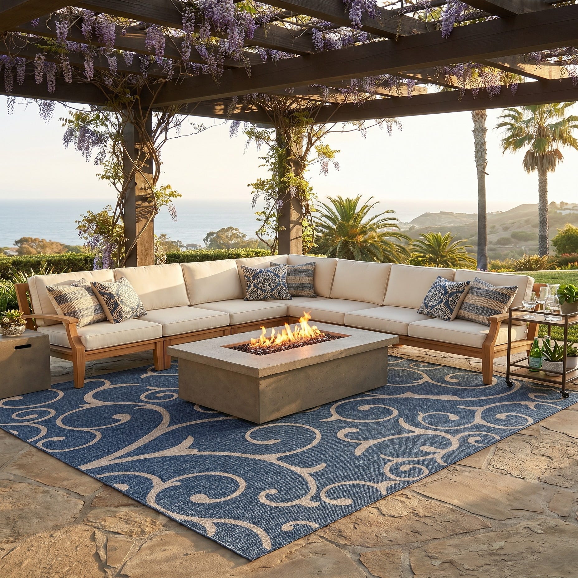 This rug is perfect for our back patio … now it really feels like an outdoor living room. We live near the beach so this was the perfect compliment to our beach/city backyard. It was expertly rolled up and after a couple of days all of the creases were relaxed and we couldn't love it more!