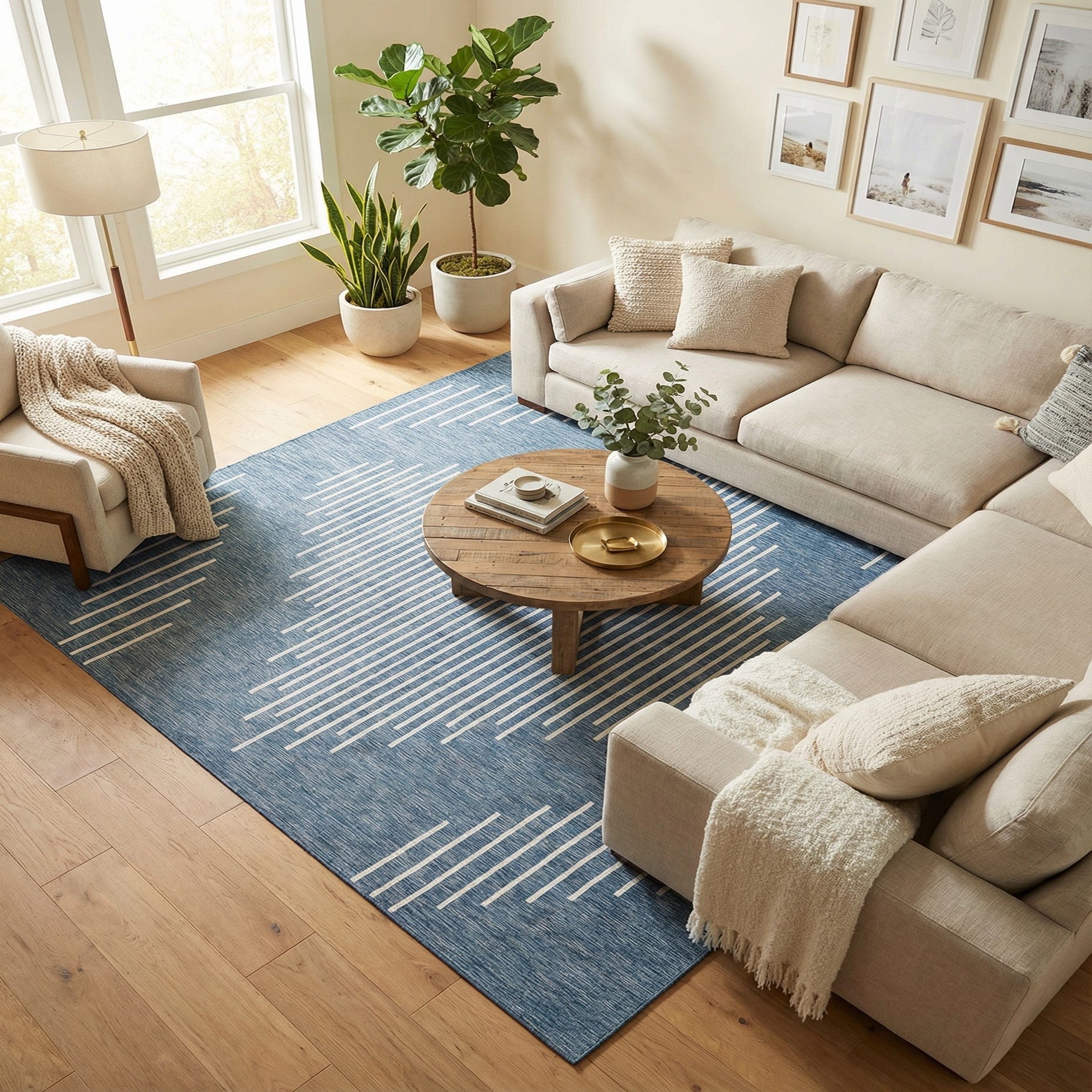 Primary color is Blue. Colors in this rug include: Blue, Ivory.