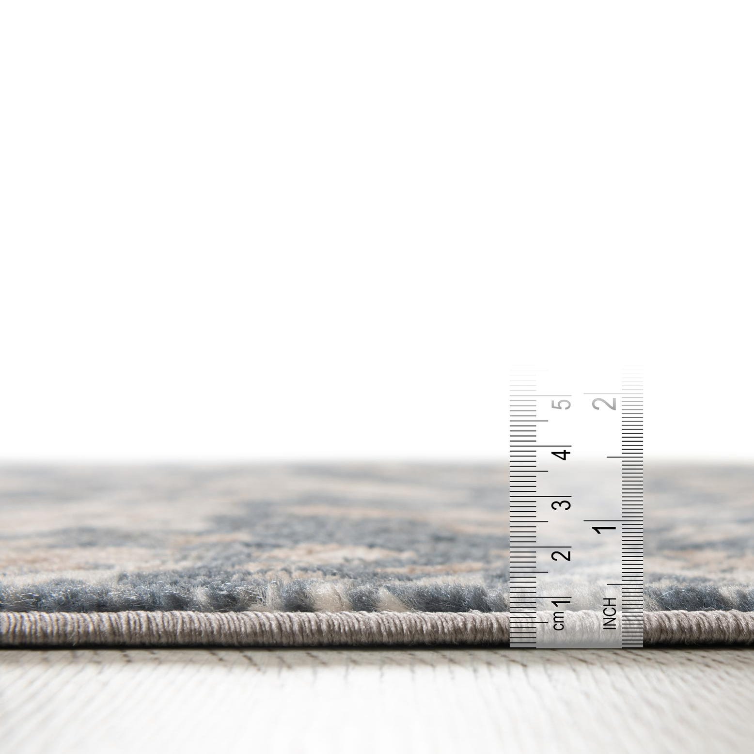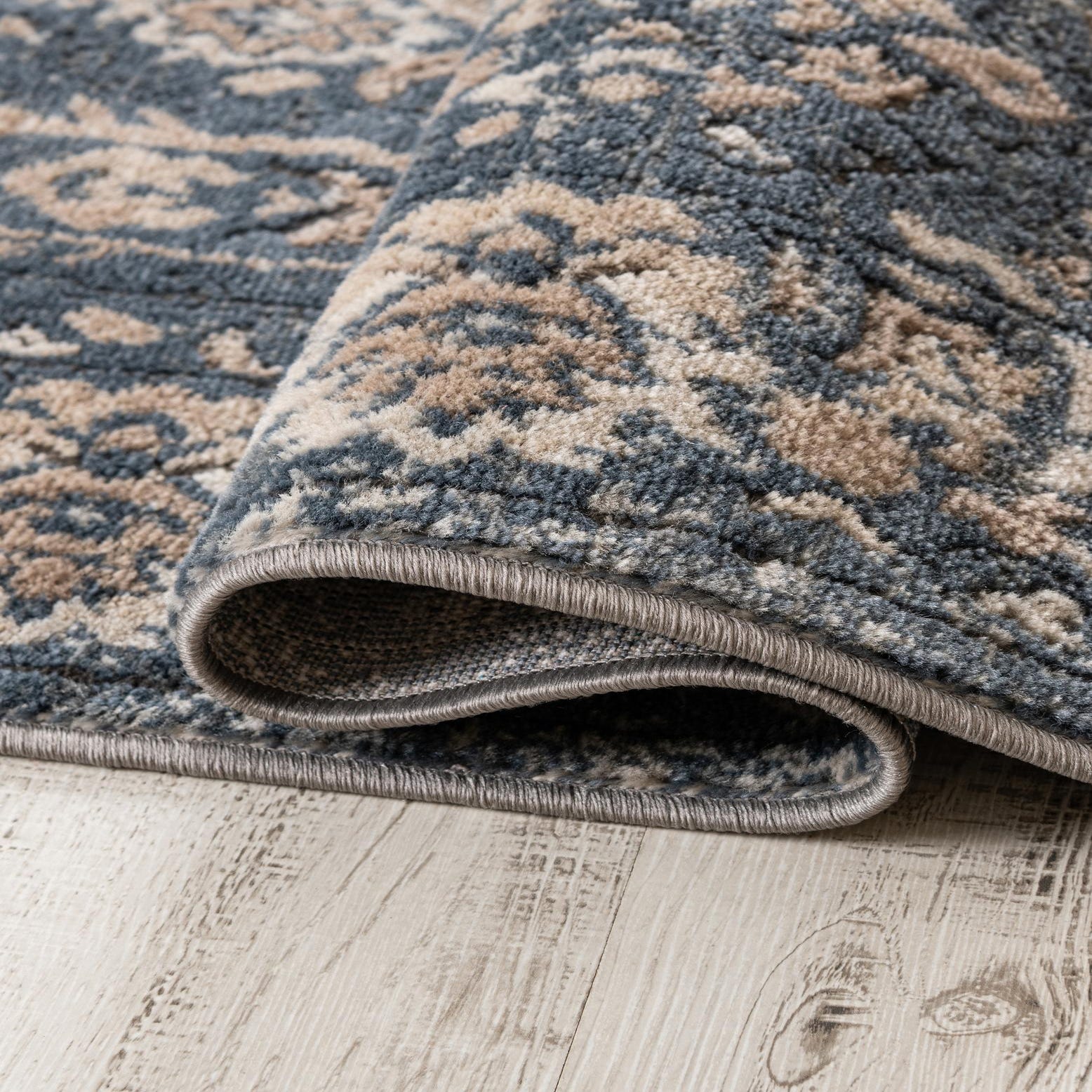 Primary color is Blue. Colors in this rug include: Blue, Beige, Ivory, Light Brown.