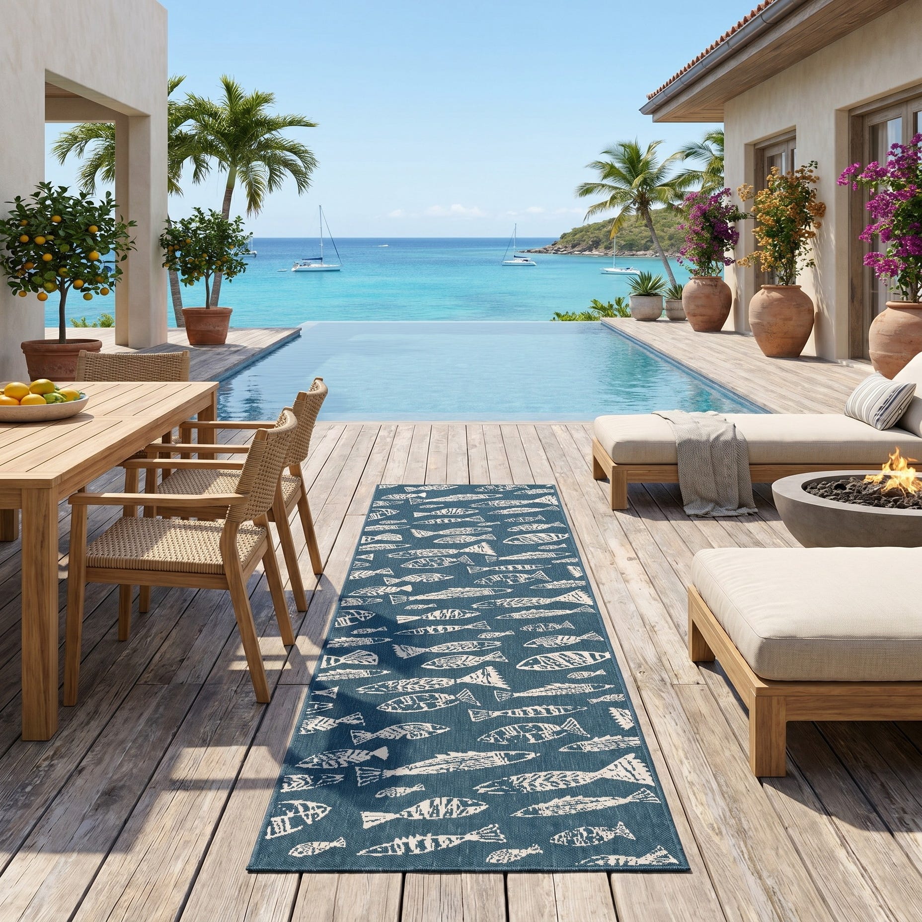 2' 7 x 12' Easy-Clean Coastal Indoor / Outdoor Runner Rug