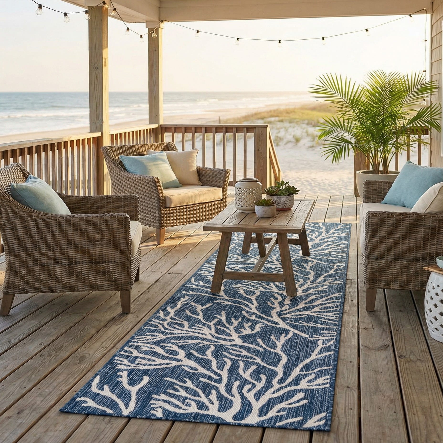 2' 7 x 12' Washable Coastal Indoor / Outdoor Runner Rug