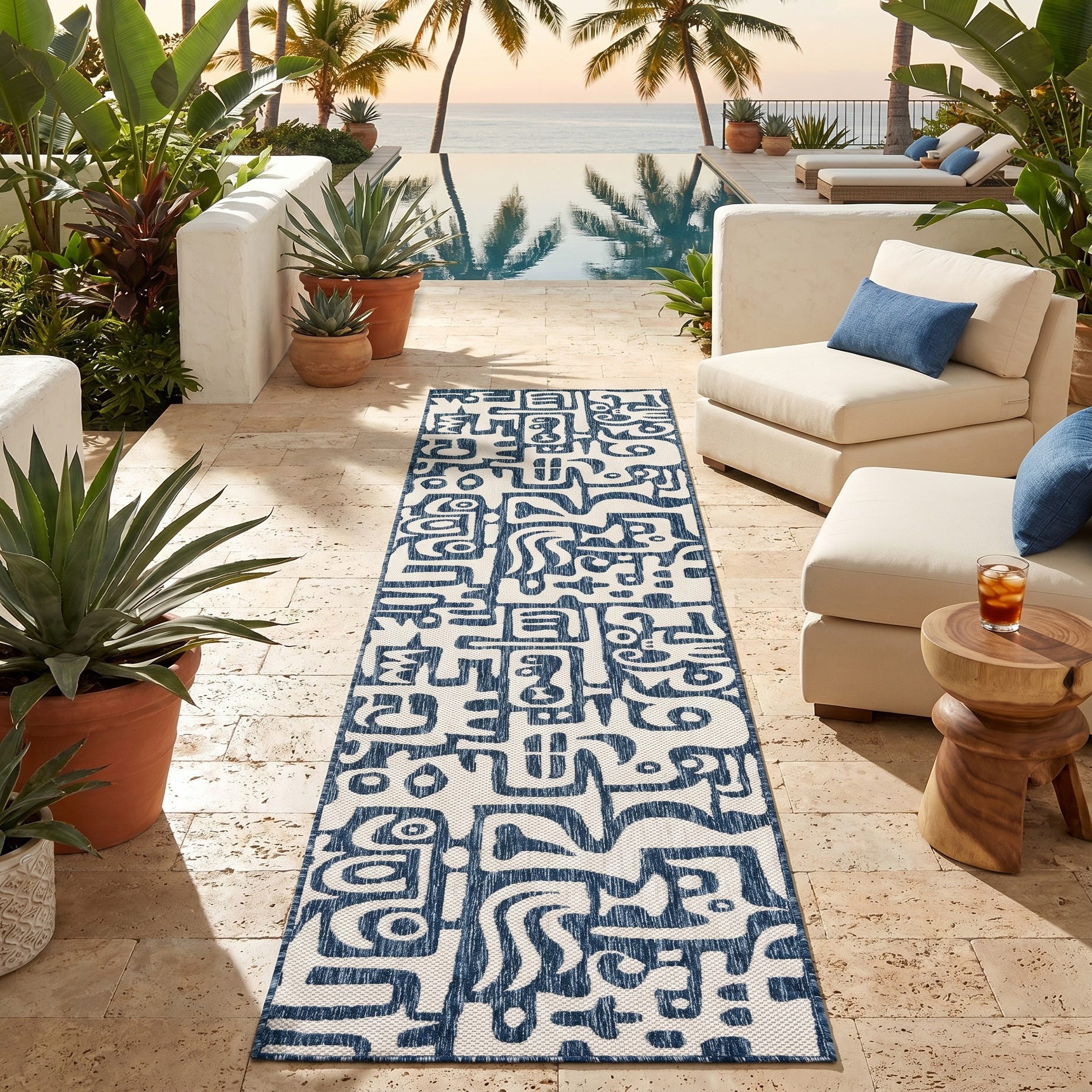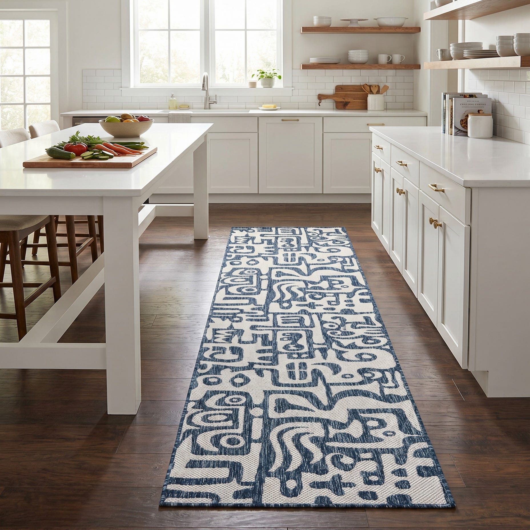 2' 7 x 12' Easy-Clean Modern Indoor / Outdoor Runner Rug