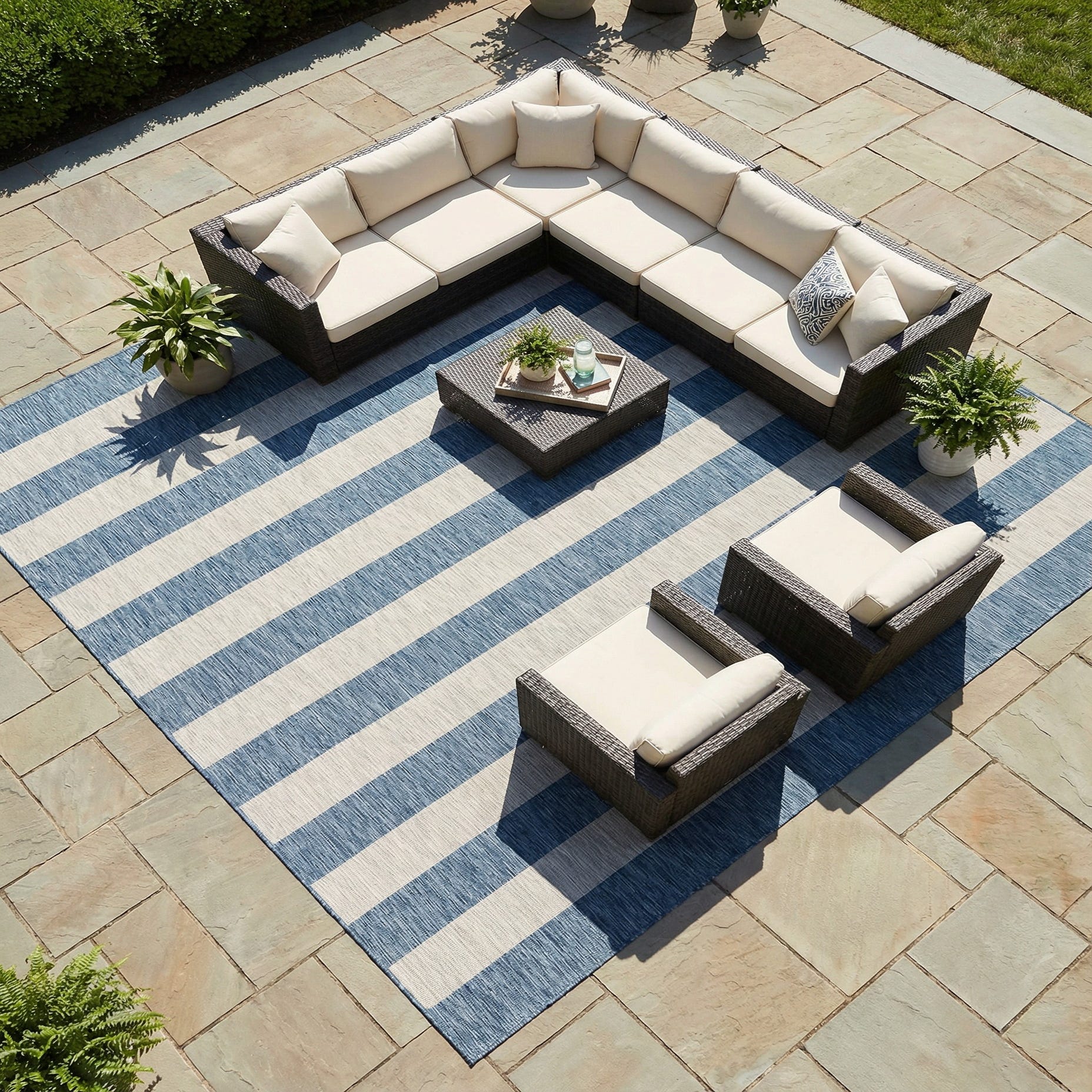 • Navy blue outdoor-grade upholstery sectional