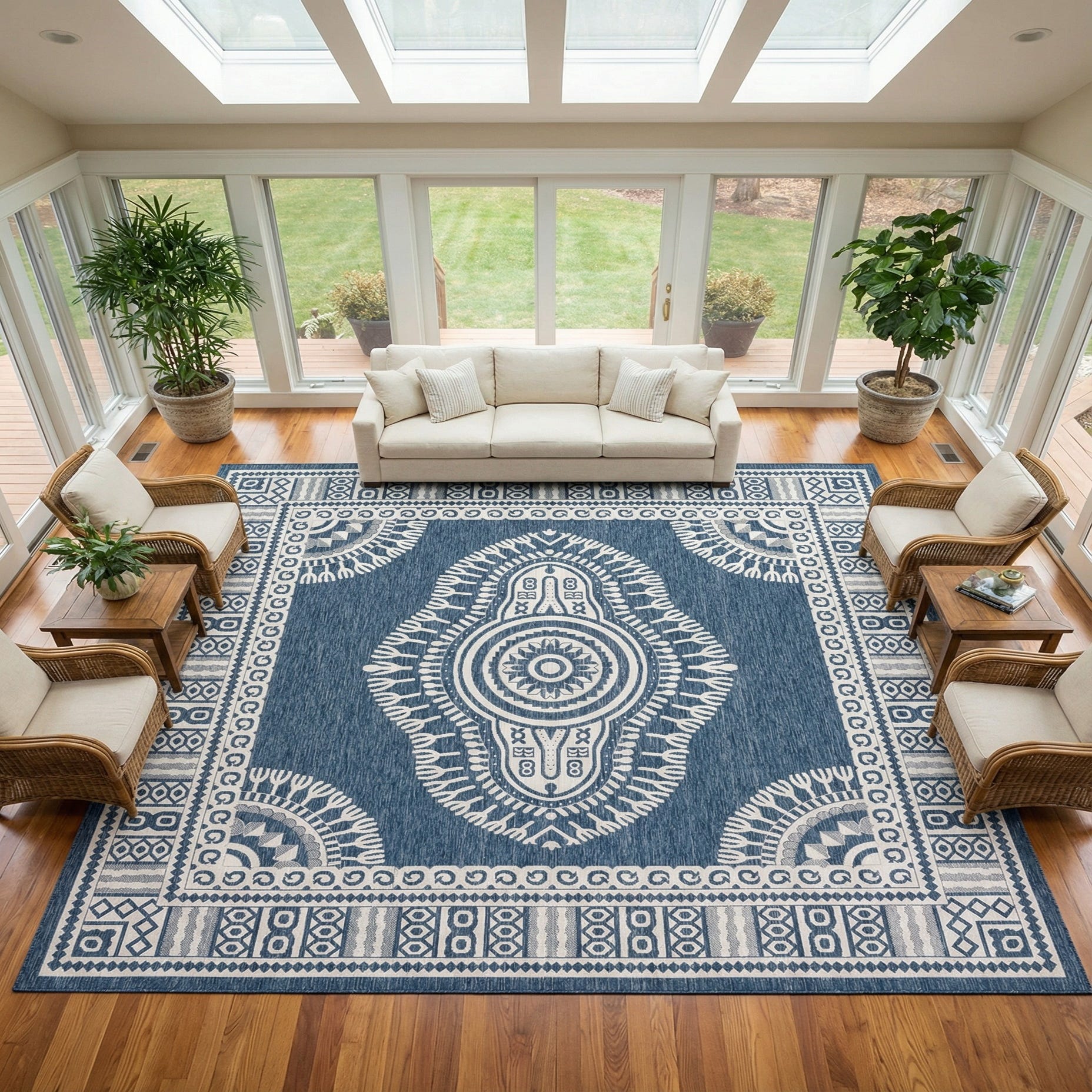 12' x 12' Washable Traditional Indoor / Outdoor Square Rug