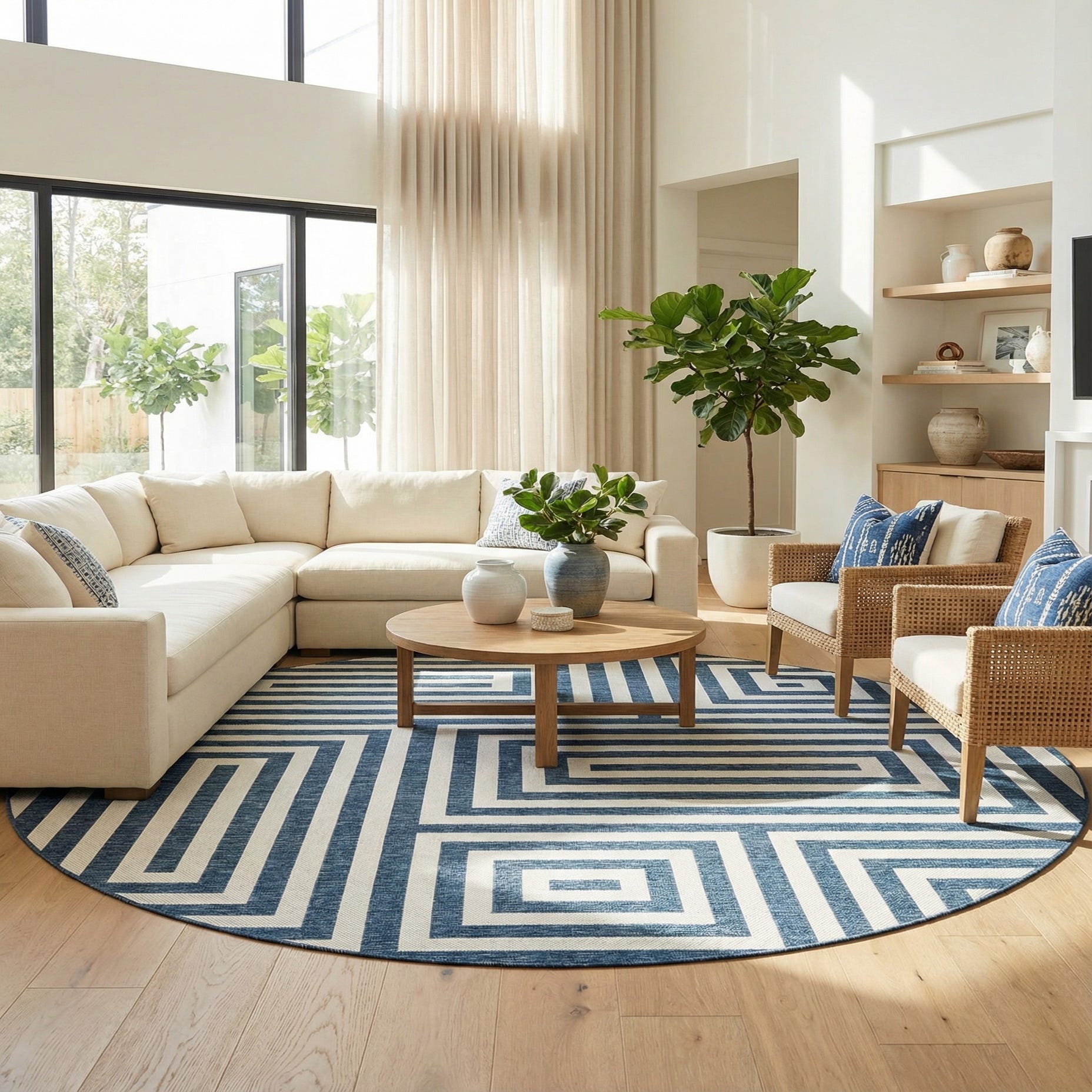13' x 13' Washable Modern Indoor / Outdoor Round Rug