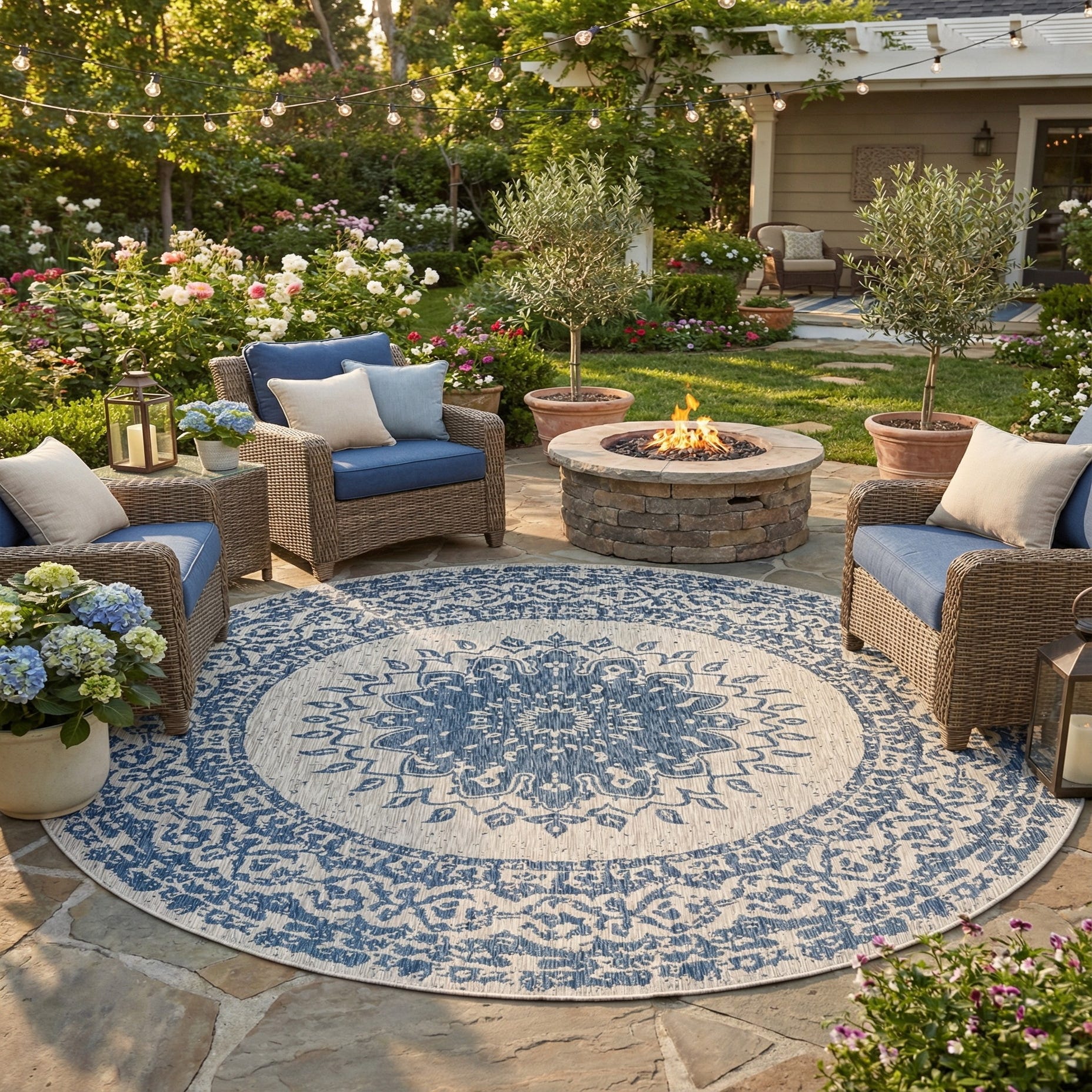 Detail image of 13' x 13'  Washable Traditional Indoor / Outdoor Round Rug