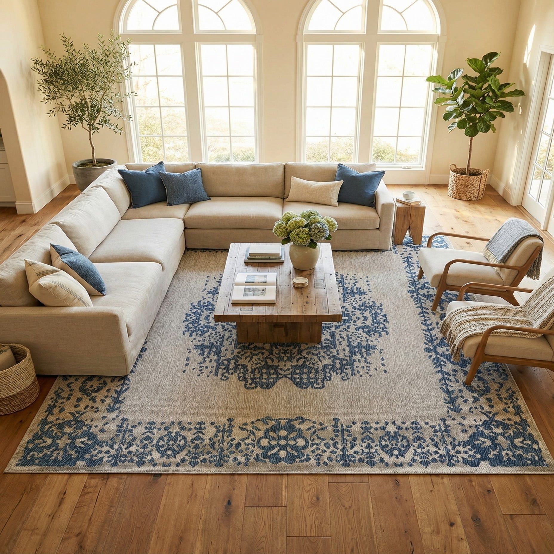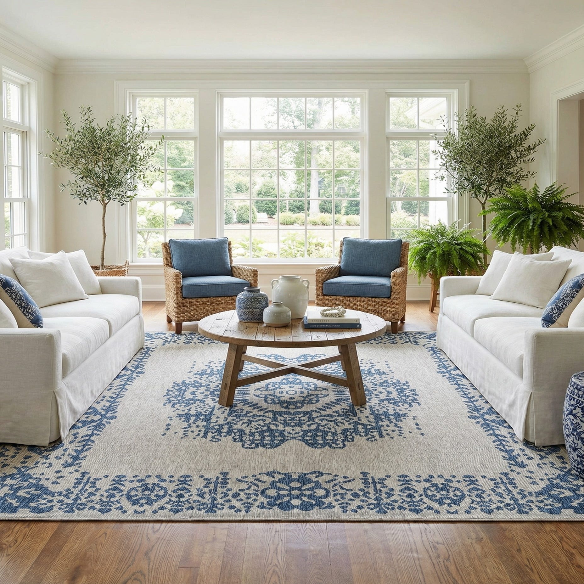 13' x 13' Washable Traditional Indoor / Outdoor Square Rug