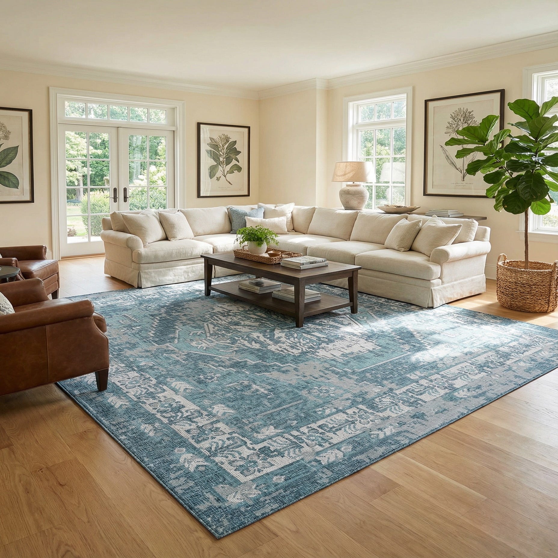 13' x 13' Washable Traditional Indoor / Outdoor Square Rug