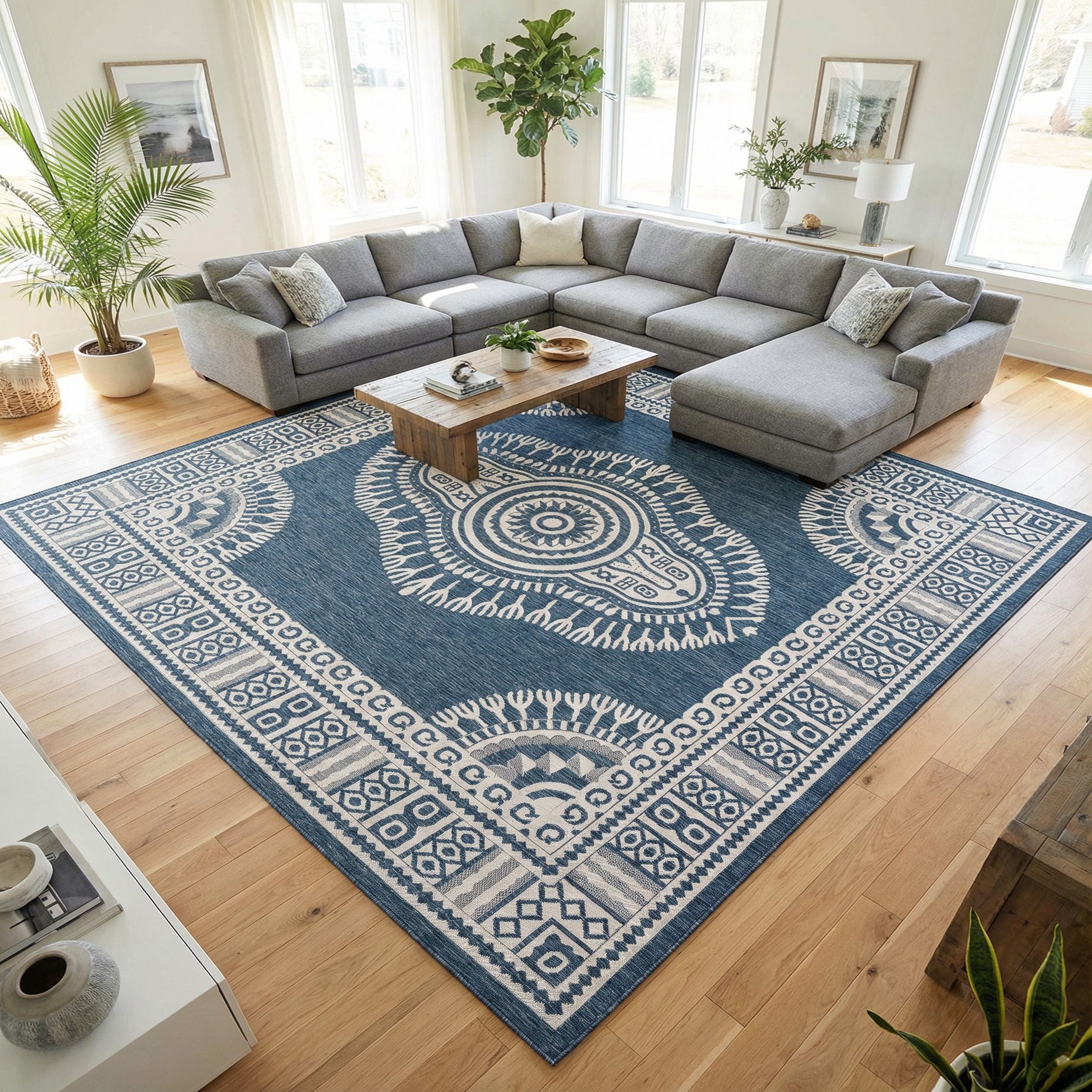 Detail image of 13' x 13'  Washable Traditional Indoor / Outdoor Square Rug