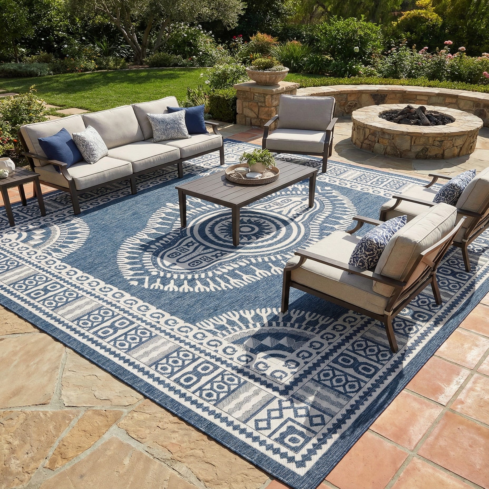 13' x 13' Washable Traditional Indoor / Outdoor Square Rug