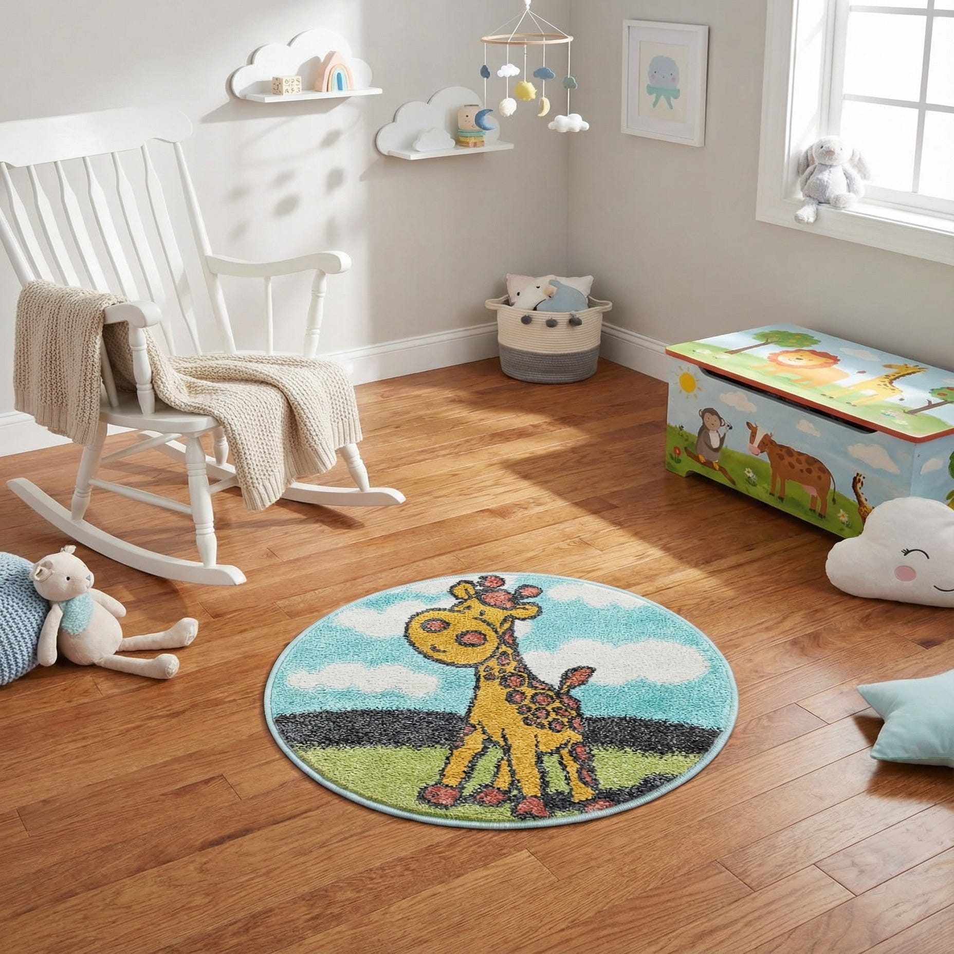 2' 2 x 2' 2 Giraffe Whimsy Kids Round Rug