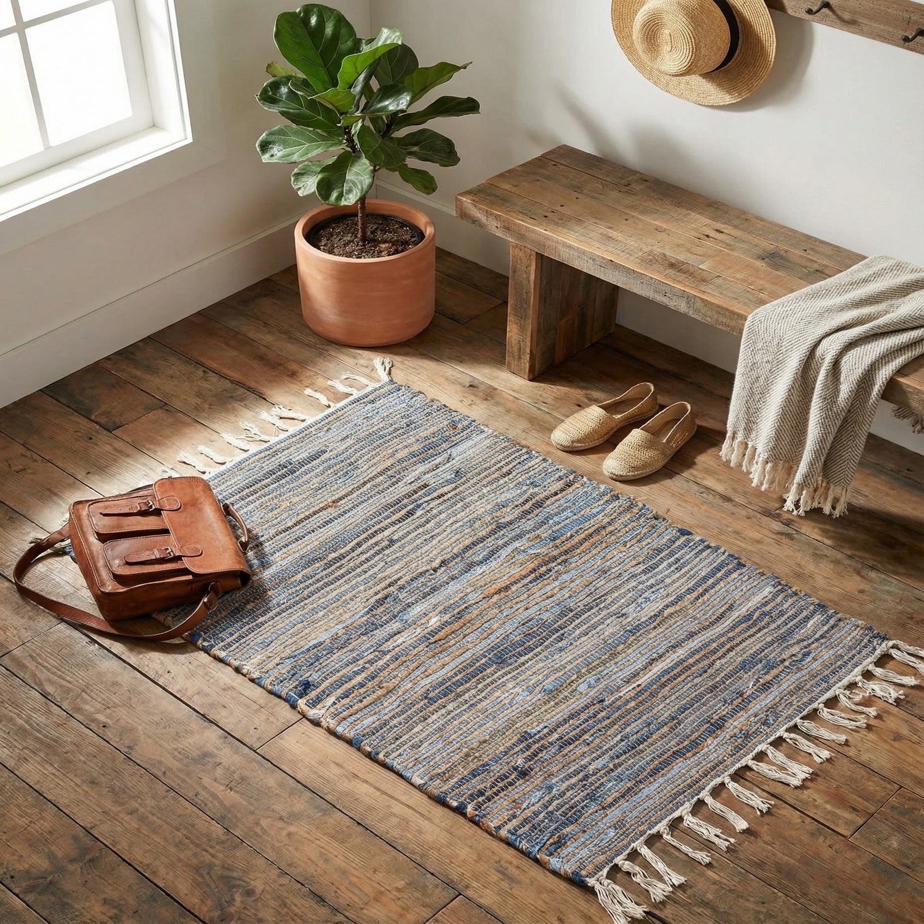 2' x 3' 1 Hand Woven Chindi Jute Rug