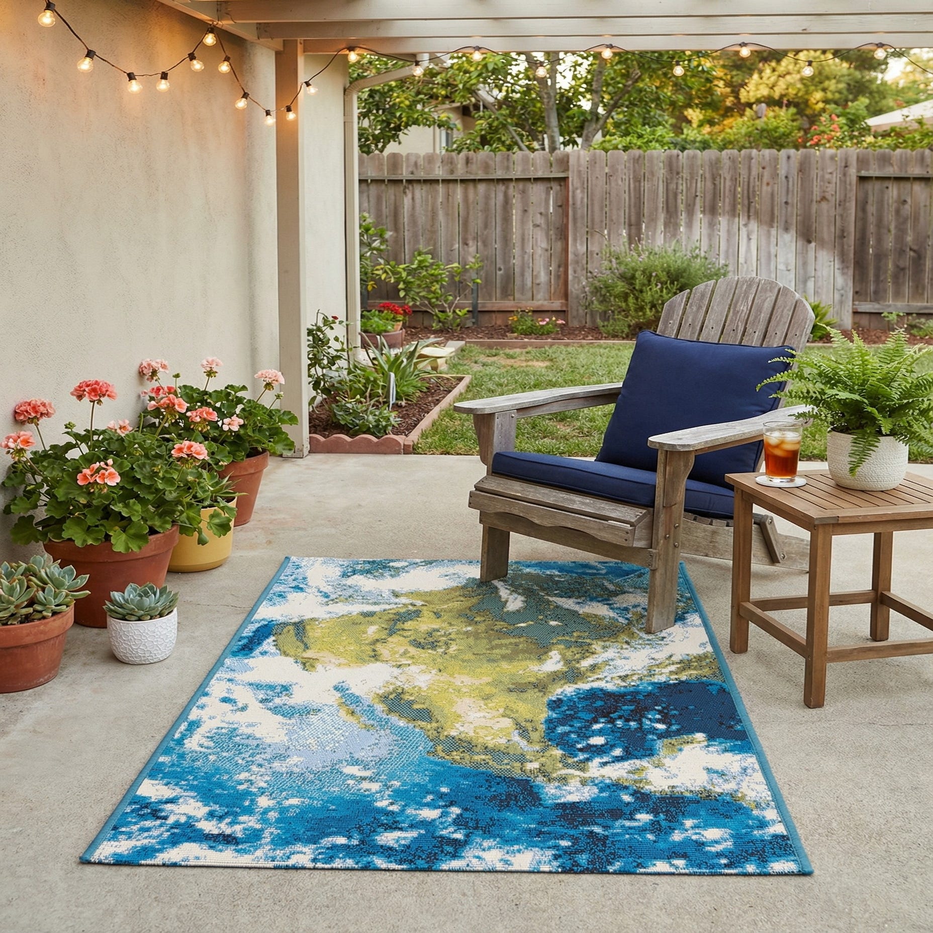 2' x 3' 1 Washable Modern Indoor / Outdoor Rug